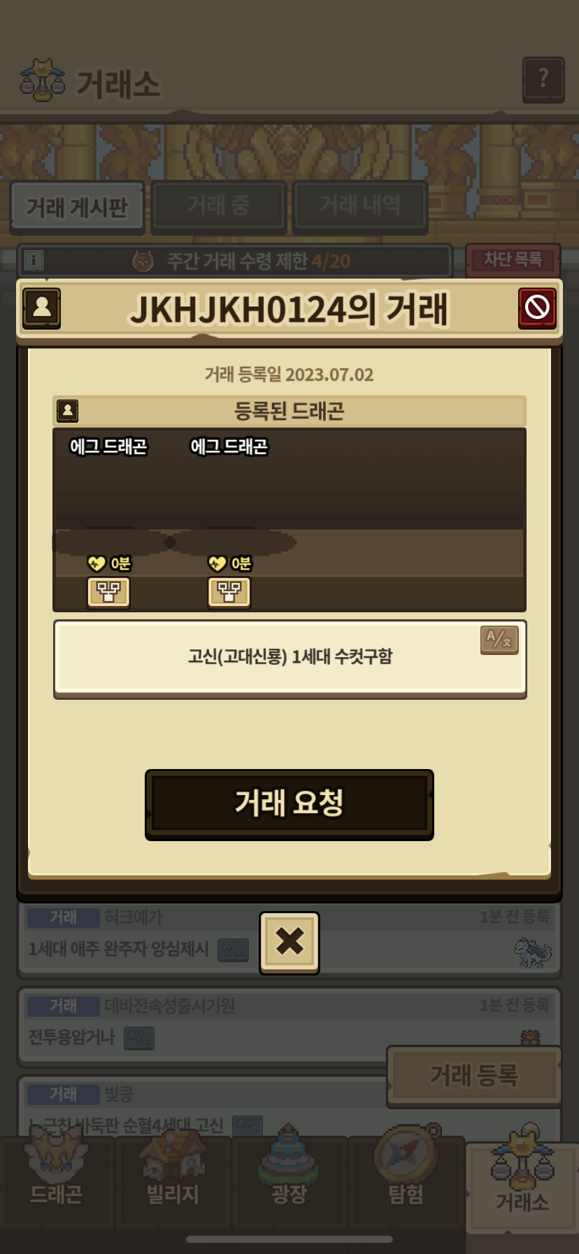 거래소에 사진과 같은 투명한 드래곤이 존재합니다…