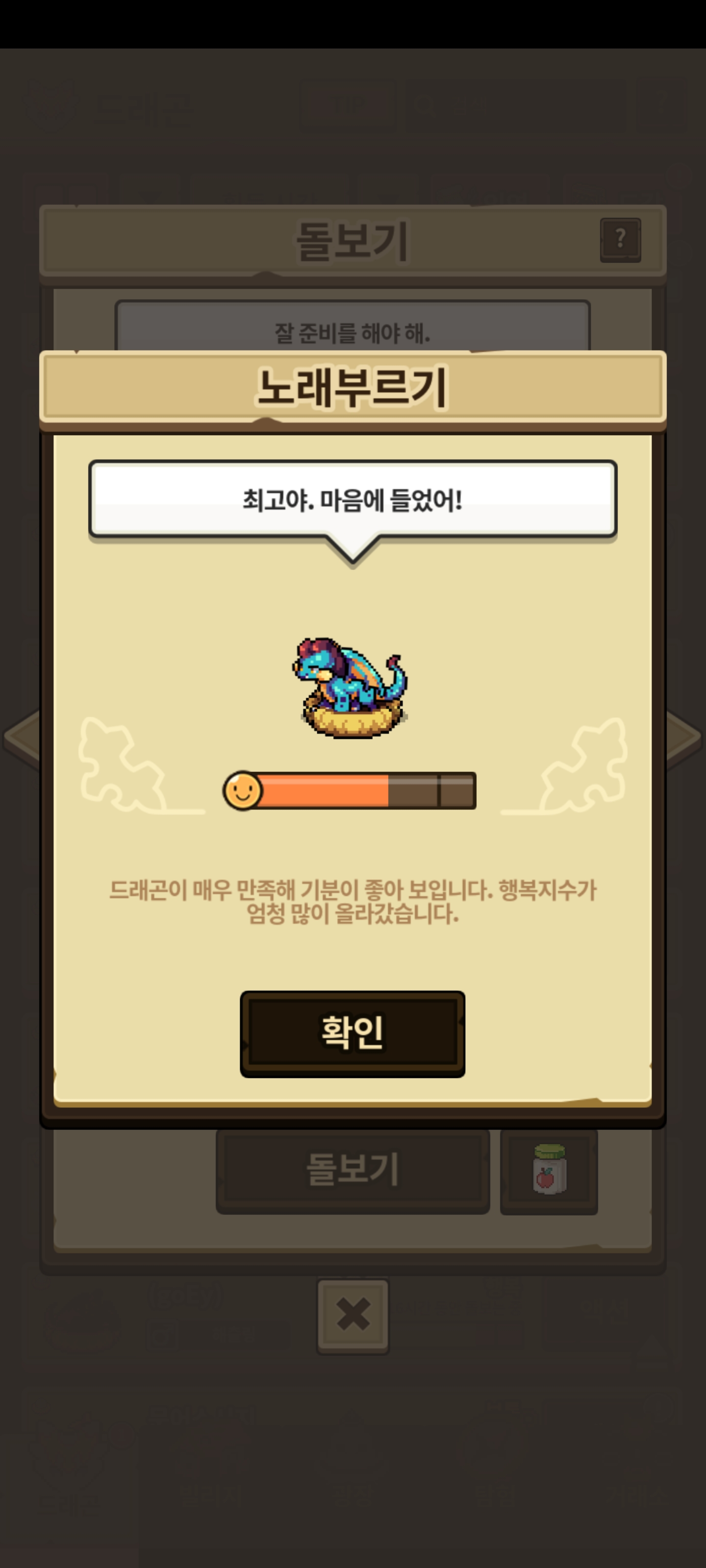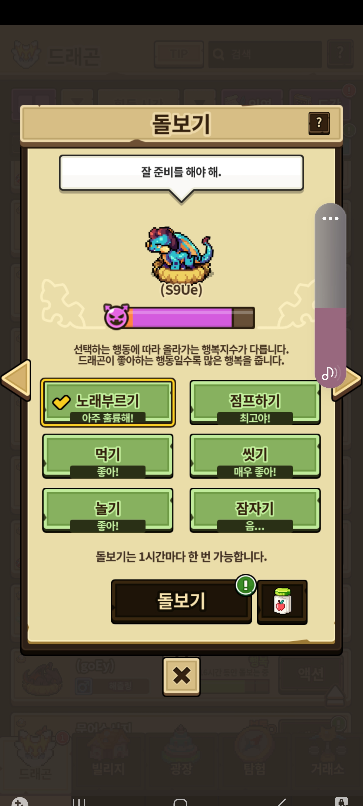 다른 용들도 부화장에 있으면 첫 돌보기일 때 부화장 덕에 추가된 게이지만큼 추가되어 표시되는 거 같아요.