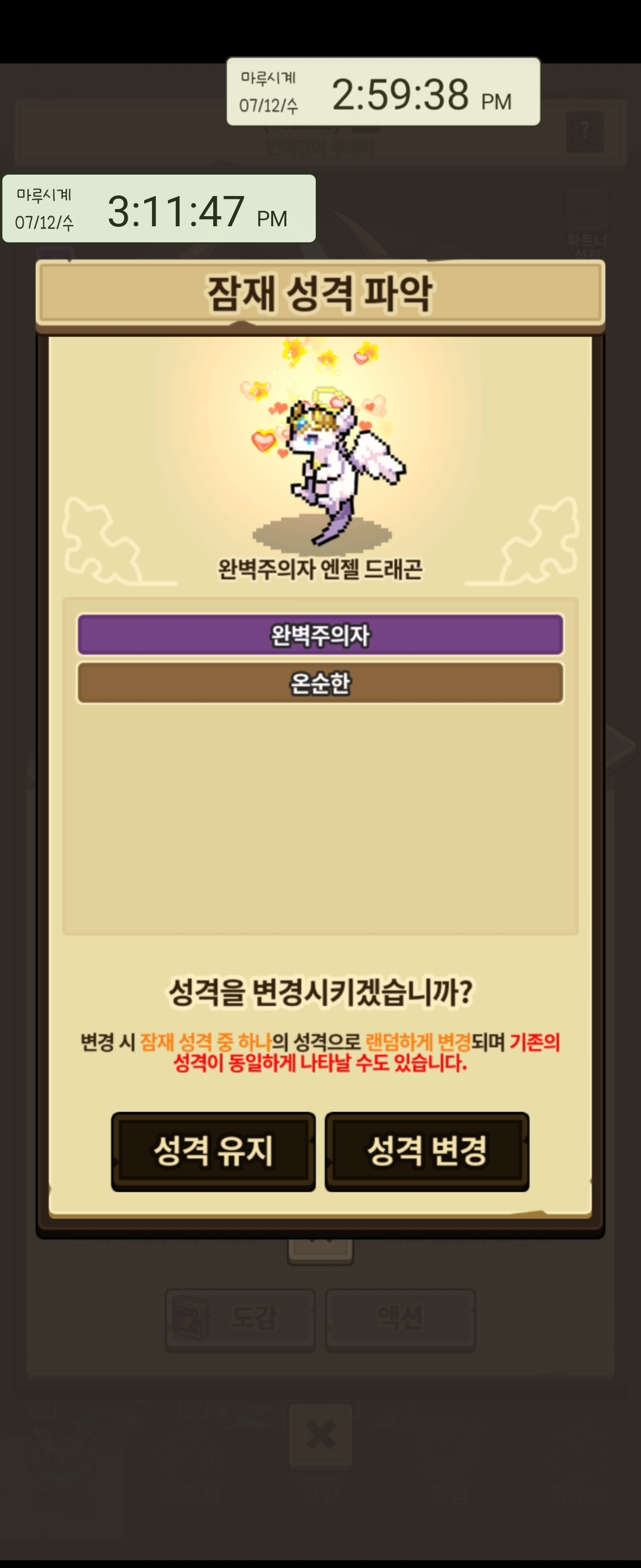 열심히 용 구하고 루네라 구하고 성격 리롤 돌렸는데..