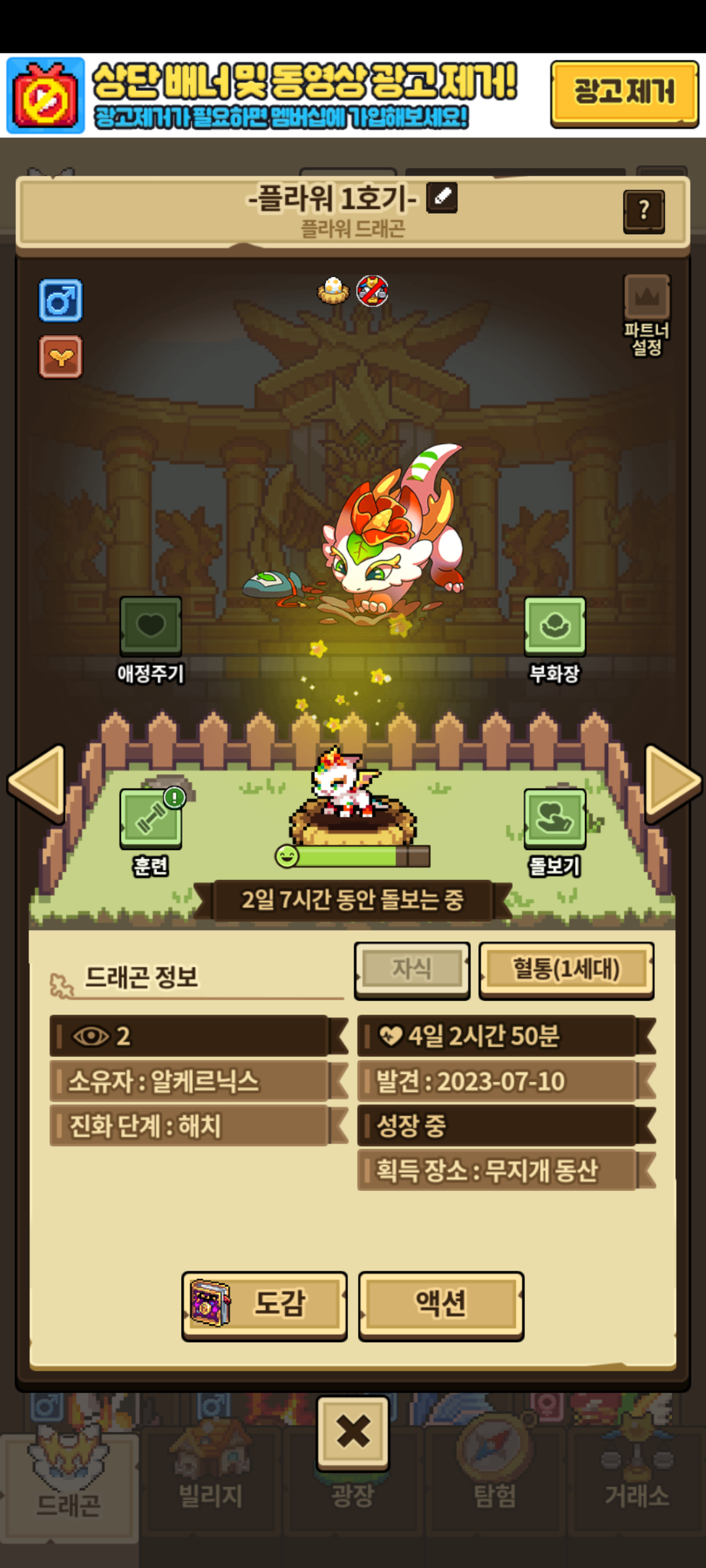 드래곤 뒤에 뜨는 꽃무늬 배경(?)이 엉뚱한 곳에 떠있습니다