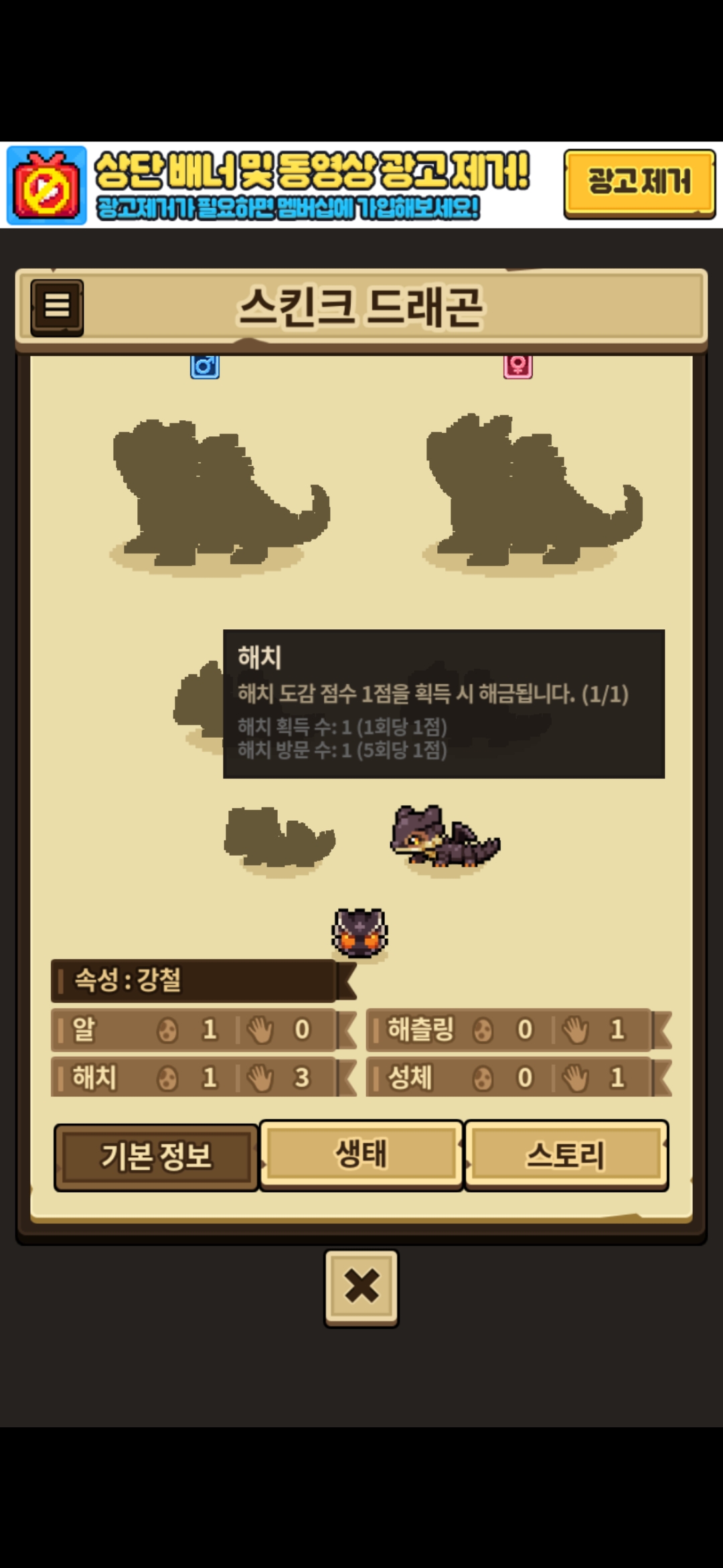 스킨크 드래곤 알의 남은 시간이 한시간일때 돌보기를 해서 부화시킬 생각이었습니다.