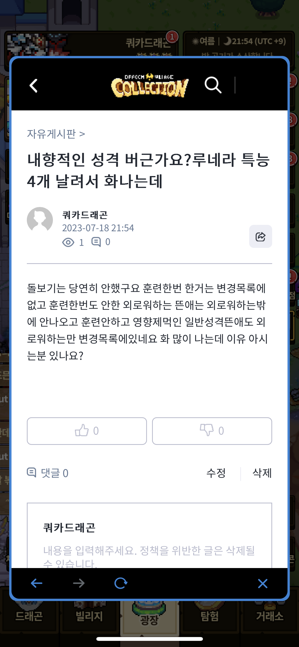 루네라 특능4개 날아갔는데 다른사람들은 훈련해도 뜨고 영양제먹여도뜬다는데 그러면 변경목록에는 있어야하는게 맞는거 아닌가요?버그라는데 답변좀 부탁드립니다