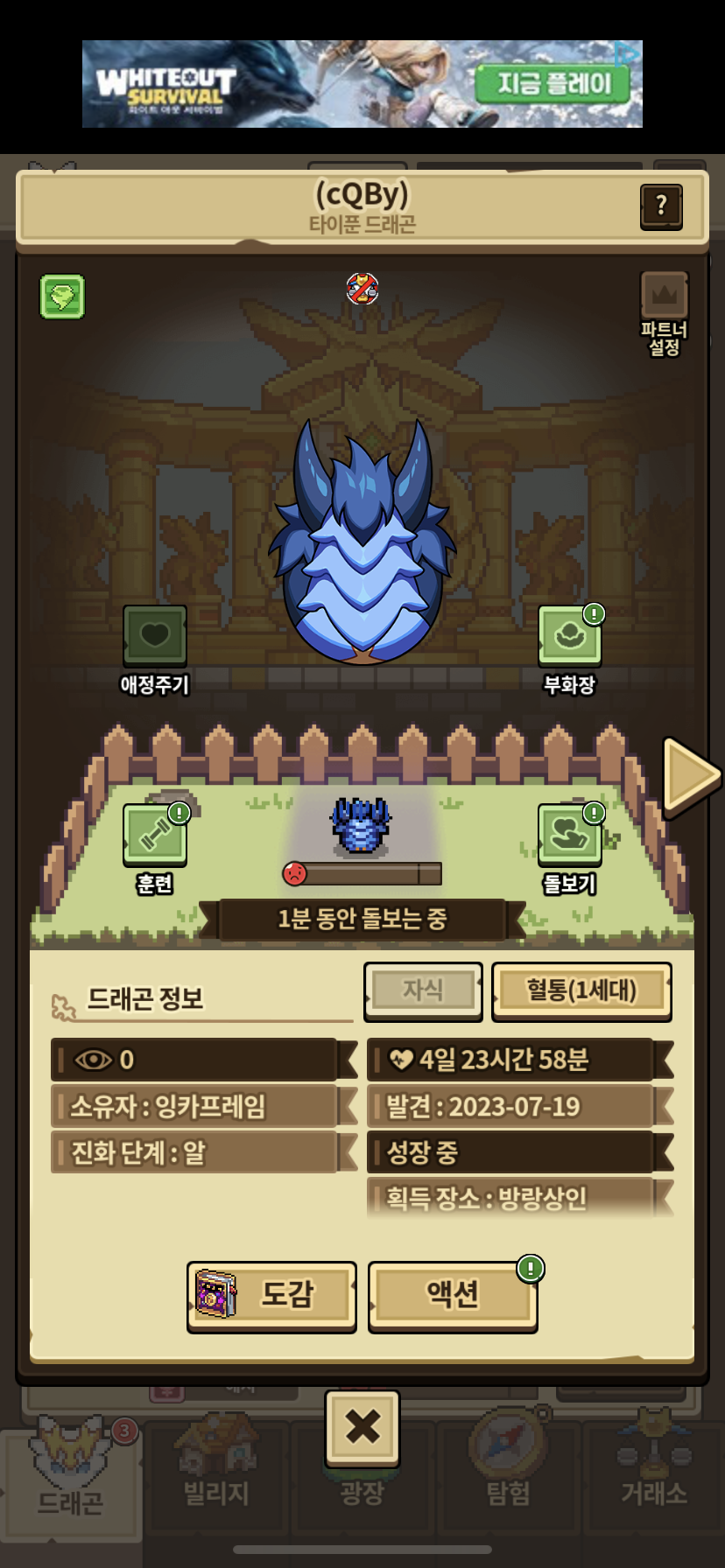 저는 그저 방랑상인 추첨알인 번개고룡 알 신청으로 광고를 보고 왔는데 타이푼 알이 받아졌어요.