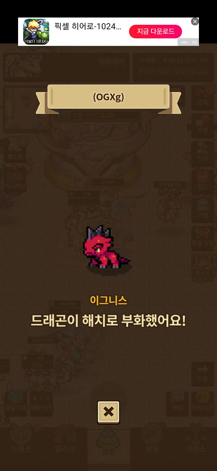알에서 깬 해치 이그나스가 창울 닫아도 닫아도 계속 뜨네요. 닫히긴 하는대 다시 보이고… 그 게임 시작하면 진화 한거 보여줄때요.난 1마라인데 10번씩 뜨고...