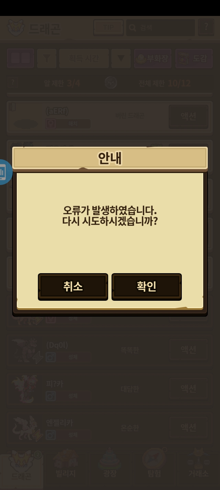 취소누르면 겜 이어서 가능한데 수시로 이화면뜨네요