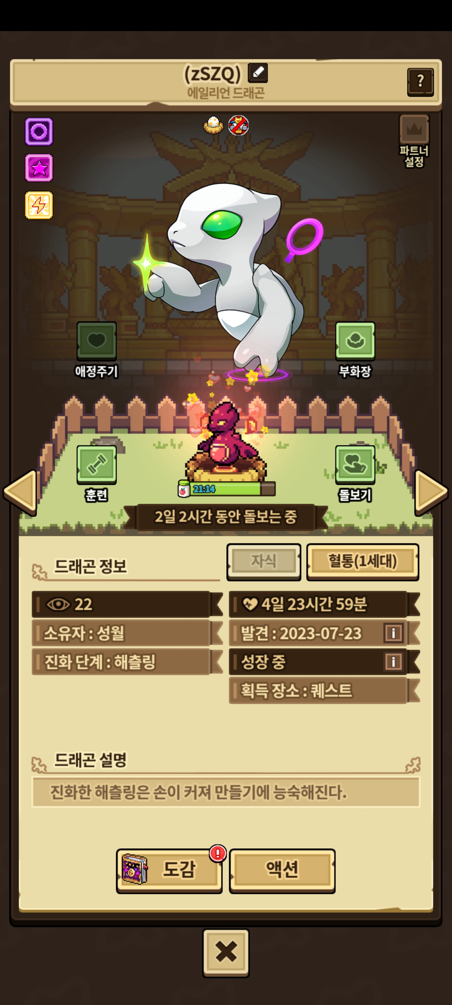 퀘스트 용에다가 중성이라 한 번밖에 얻지 못하는 용입니다.
