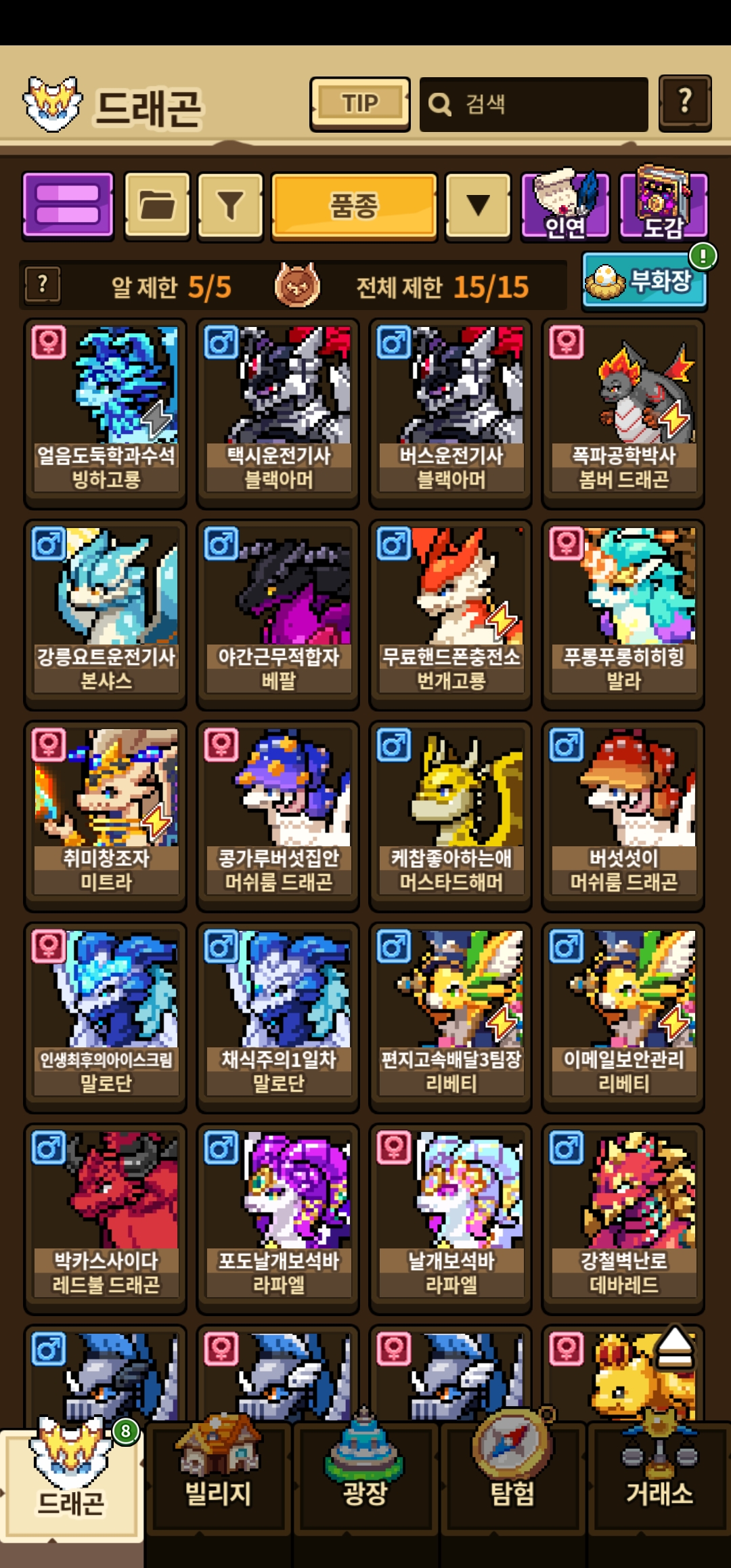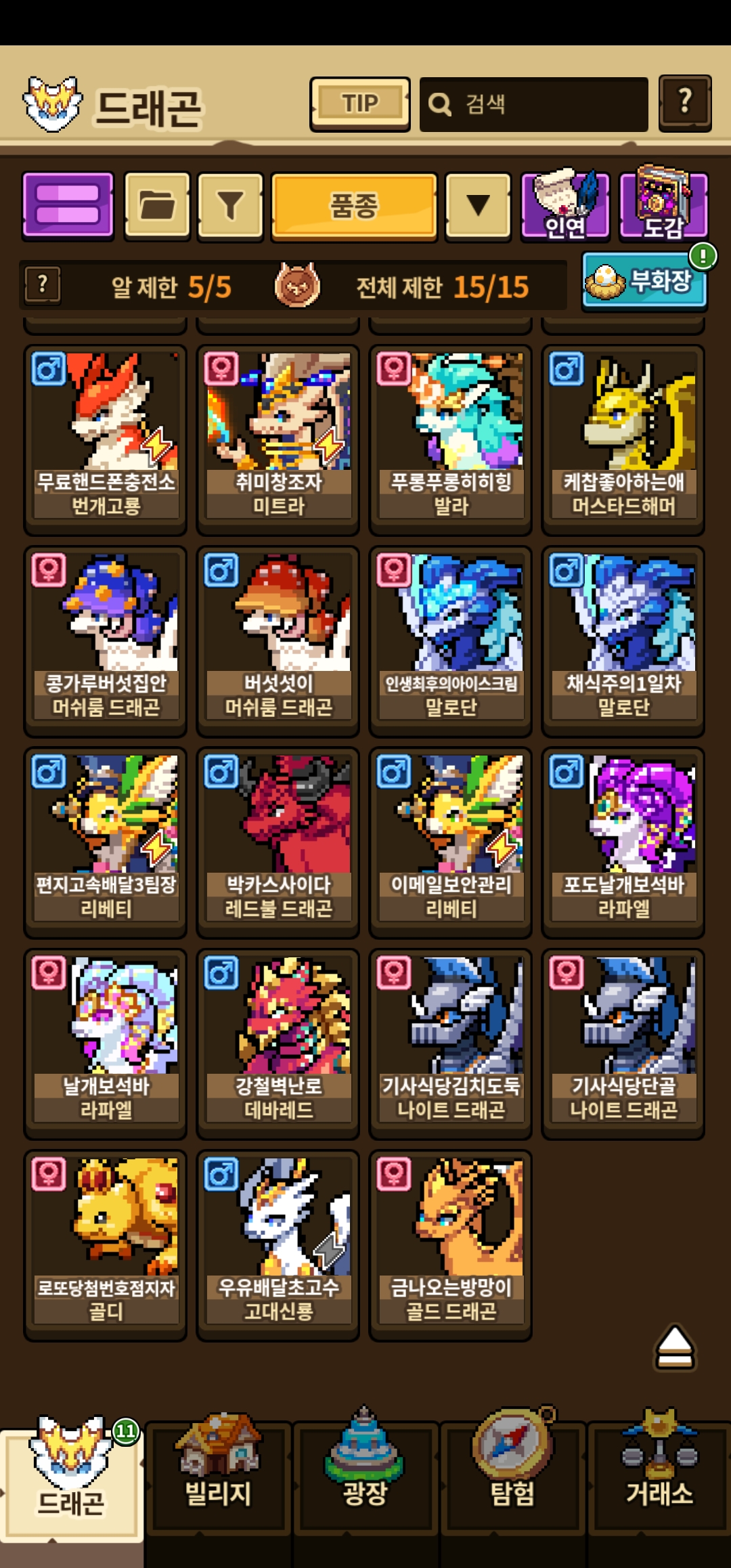 - 1. 드래곤 정렬 옵션이 다른 것(이름 색 등) 이었을 때 품종 정렬로 변동하는 경우 상단 성체 드래곤에 낮은 확률로 발생.