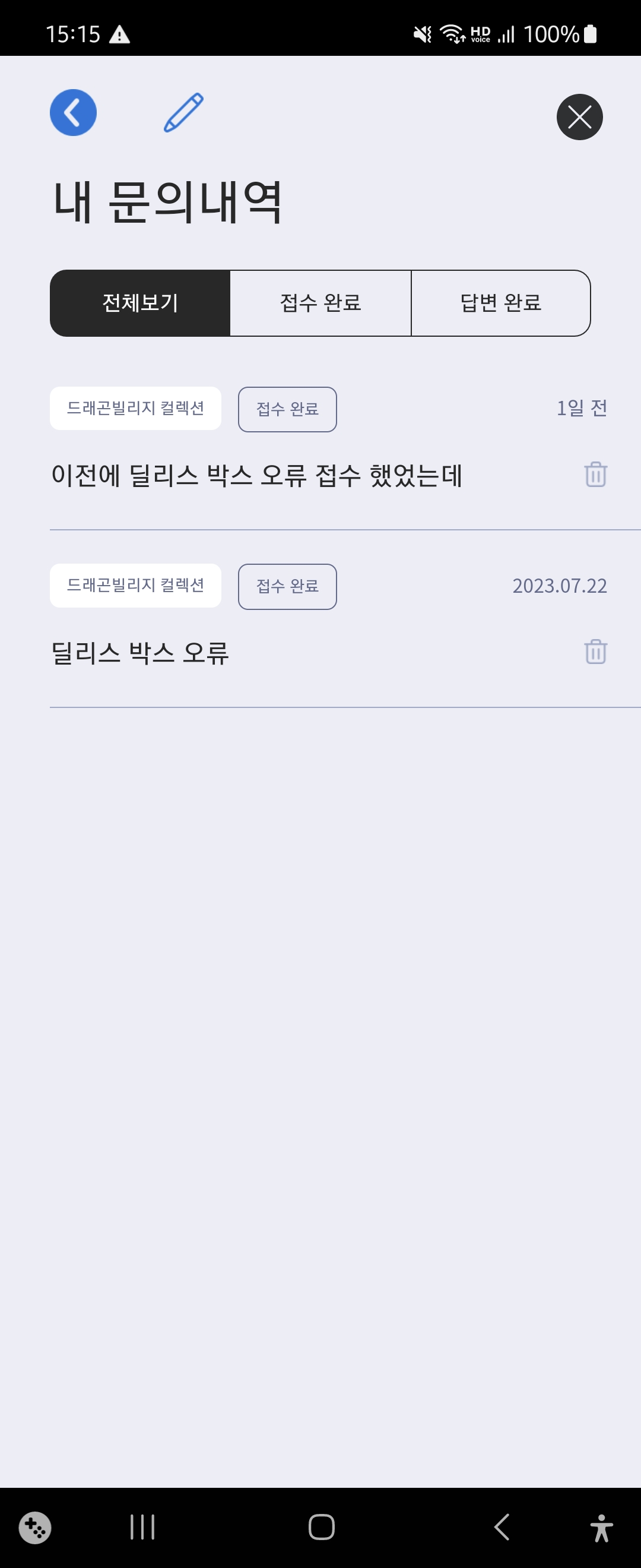 문의 글을 재차 남겼는데도 답변이 없습니다.