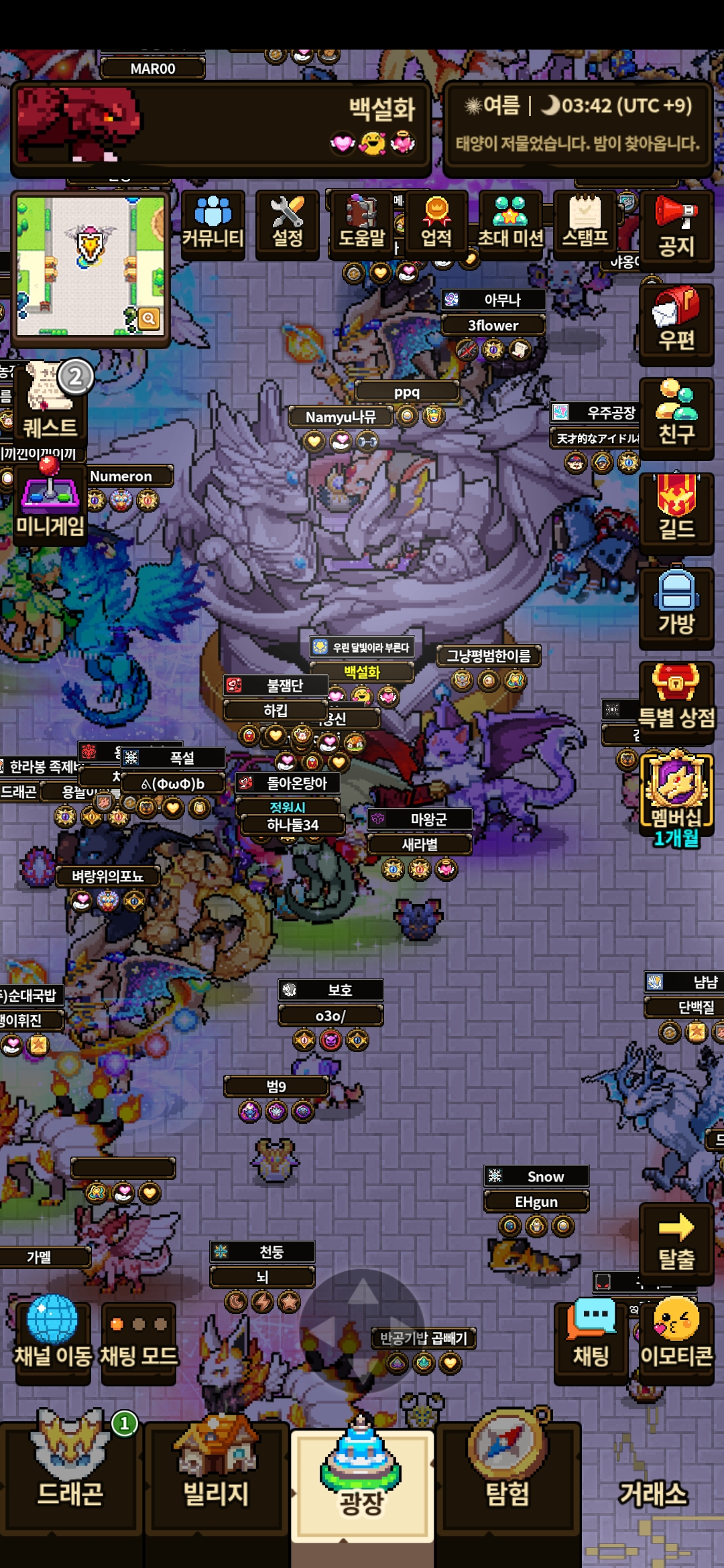 원래는 드래곤, 빌리지, 광장, 탐험, 거래소까지