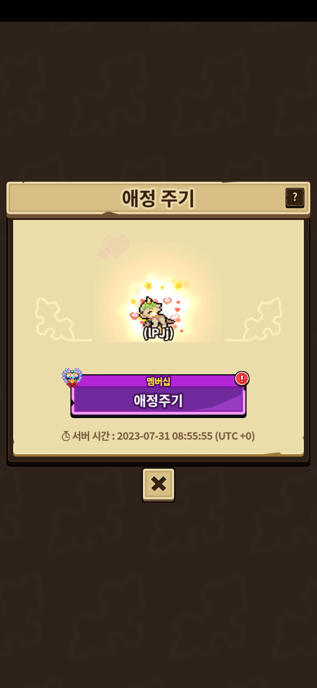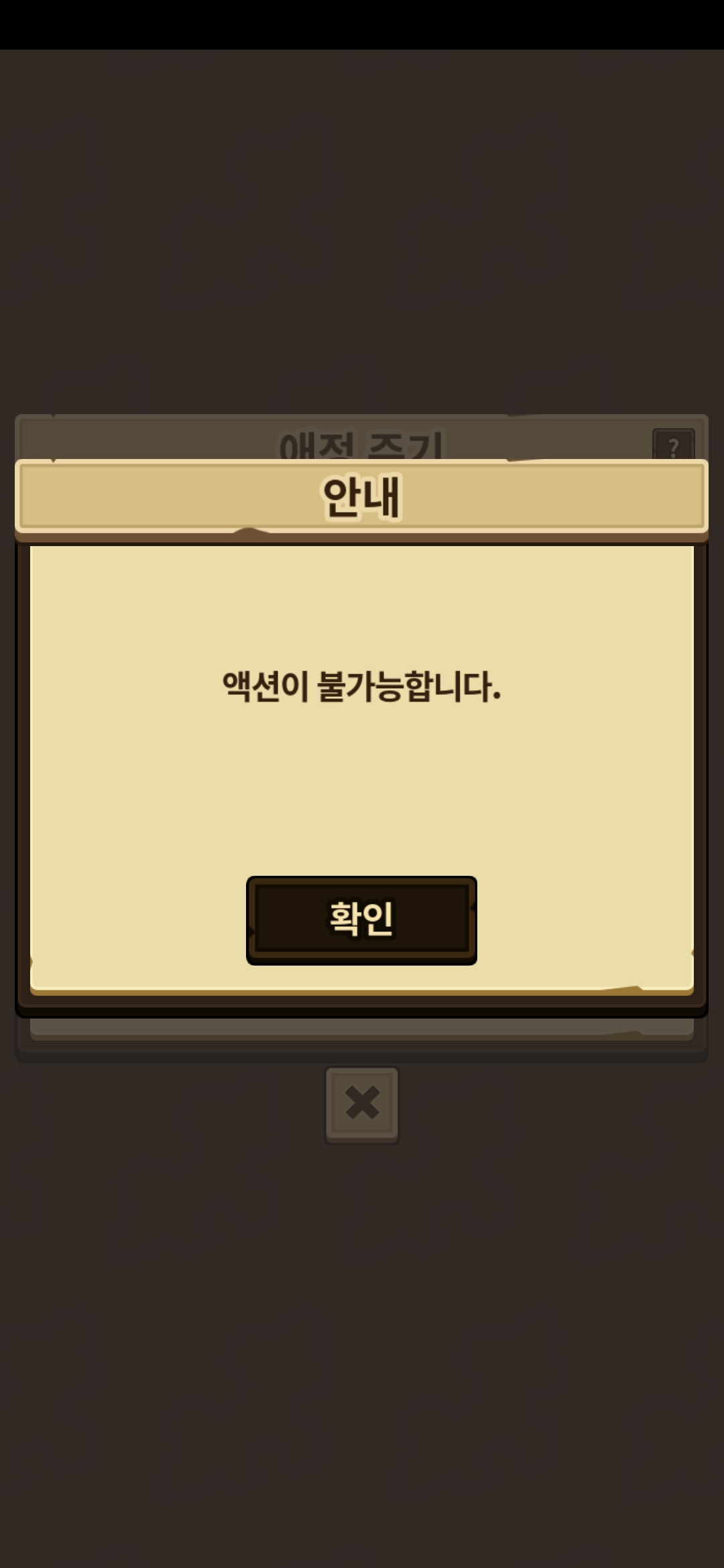 애정주기 버튼 누르니까 액션이 불가능하다고합니다