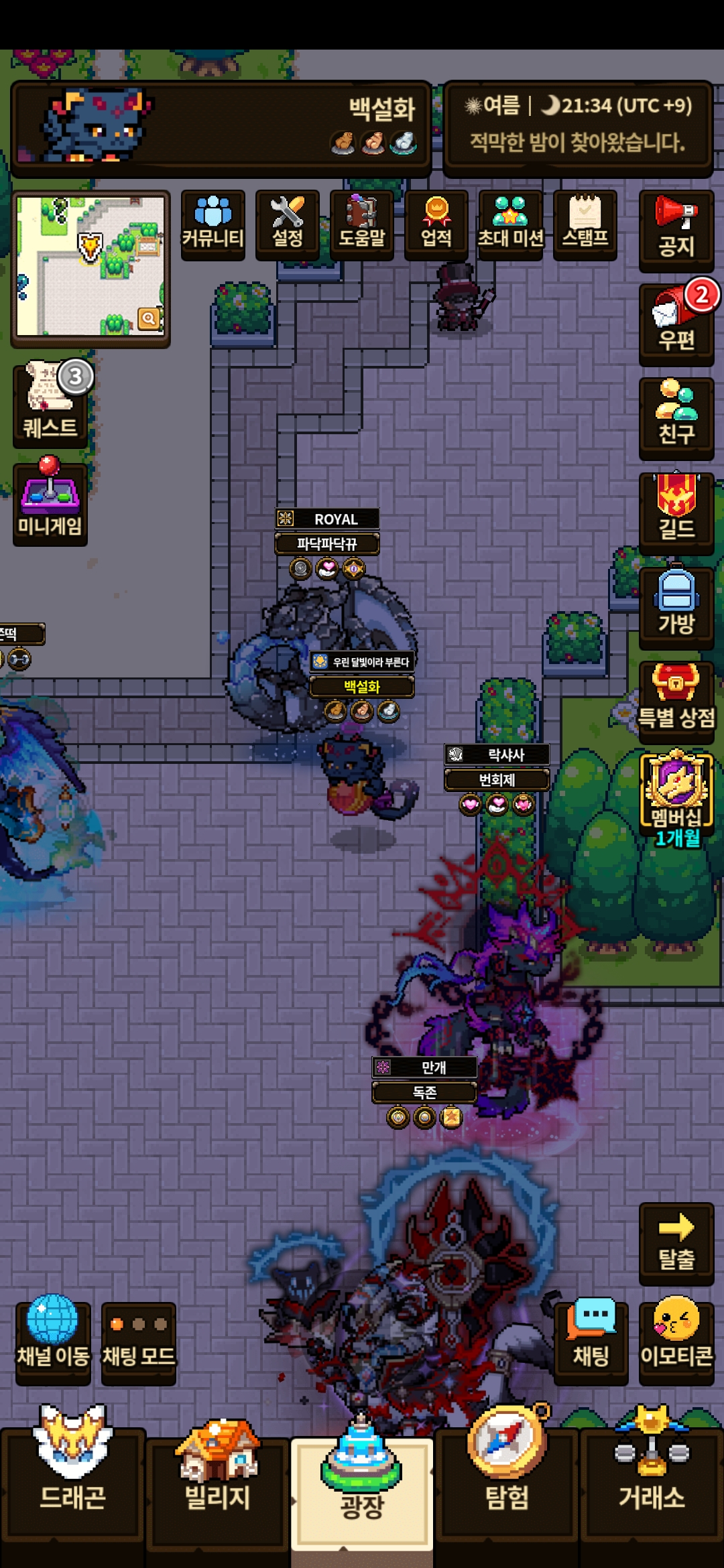 아까도 그래서 재접하니까 괜찮아졌는데 하단의 빌리지 버튼이 눌린 것처럼 표시되네요