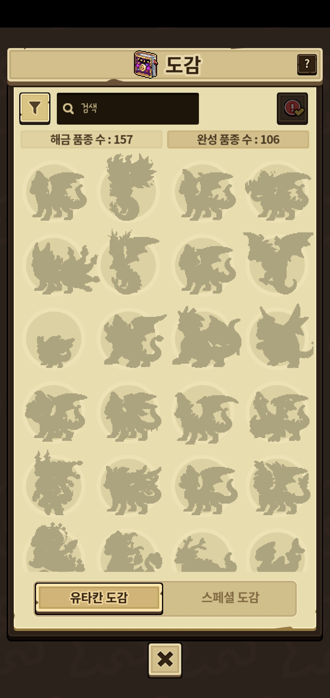 로그아웃했다가 다시 로그인 했더니 도감에 들어가면 이 상태로 뜨네요 용 눌렀을땐 그대로인데 도감 메인창에서만 이래요