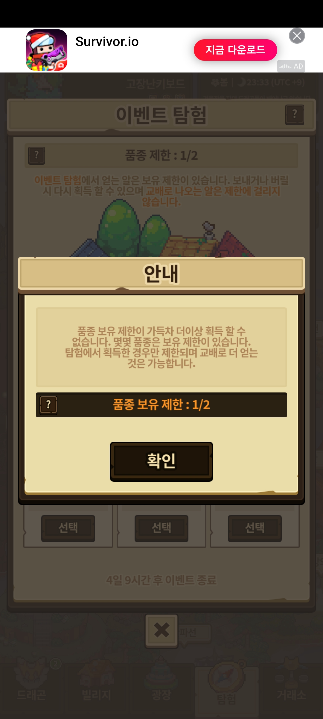 이것저것 해보다가 팡팡이 승천 시켜봤는데 가지고 있는 건 건 1마리인데 더 획득할 수 없다고 뜨네요