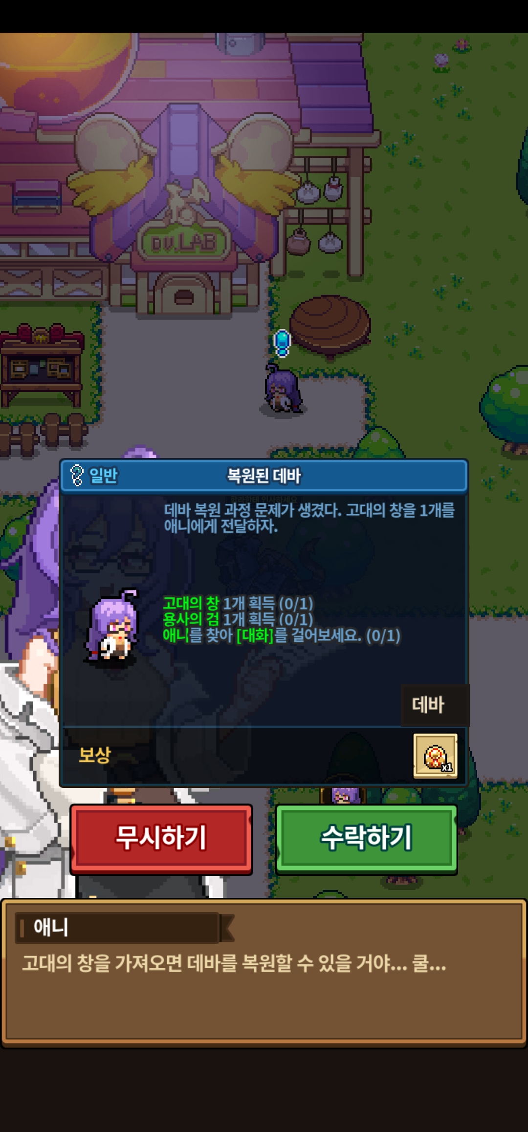 애니도 고대의 창을 가져오라고 말하고 퀘스트 내용에서도 고대의 창 1개를 애니에게 전달하자. 인데 용사의 검도 요구하네요