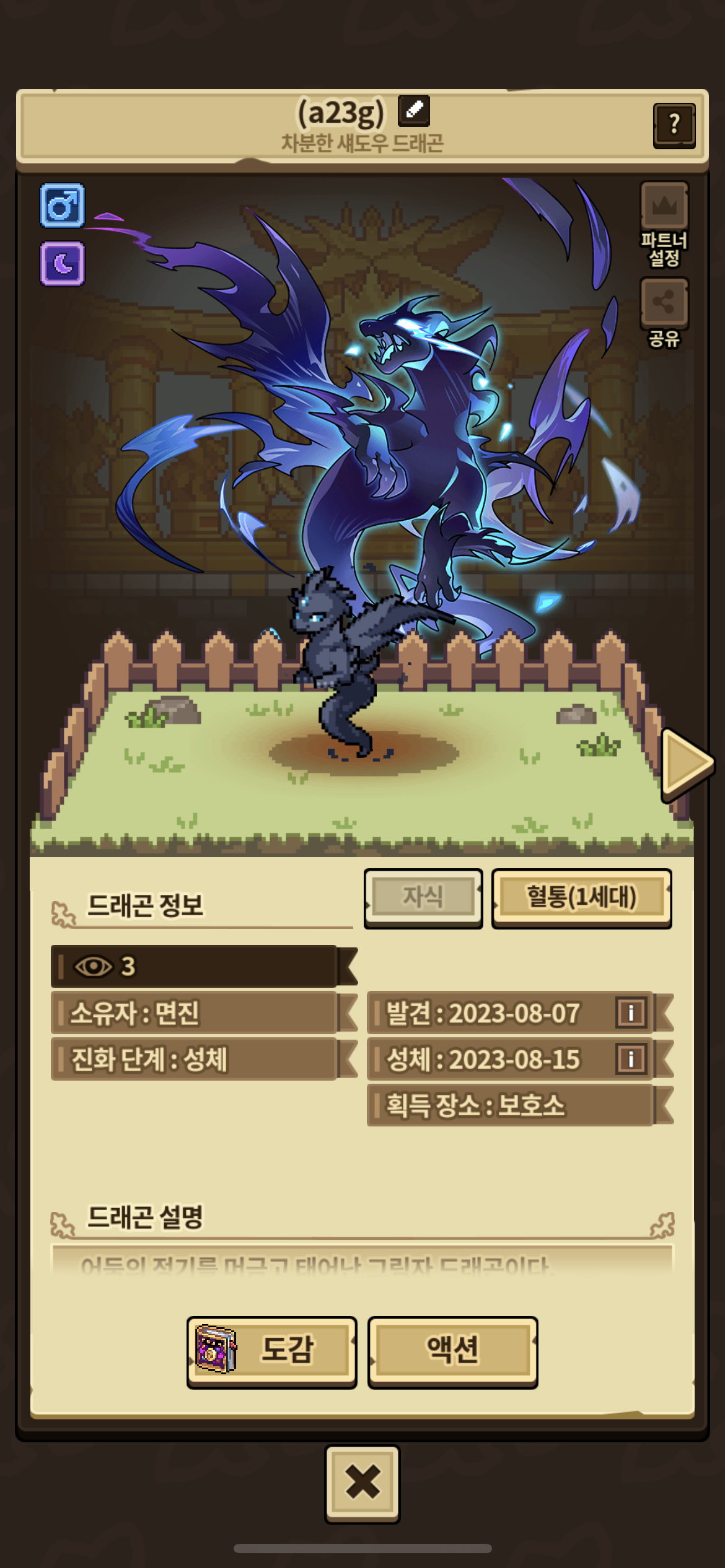 1.보호소에서 섀도우 애정주기 해츨링을 얻음