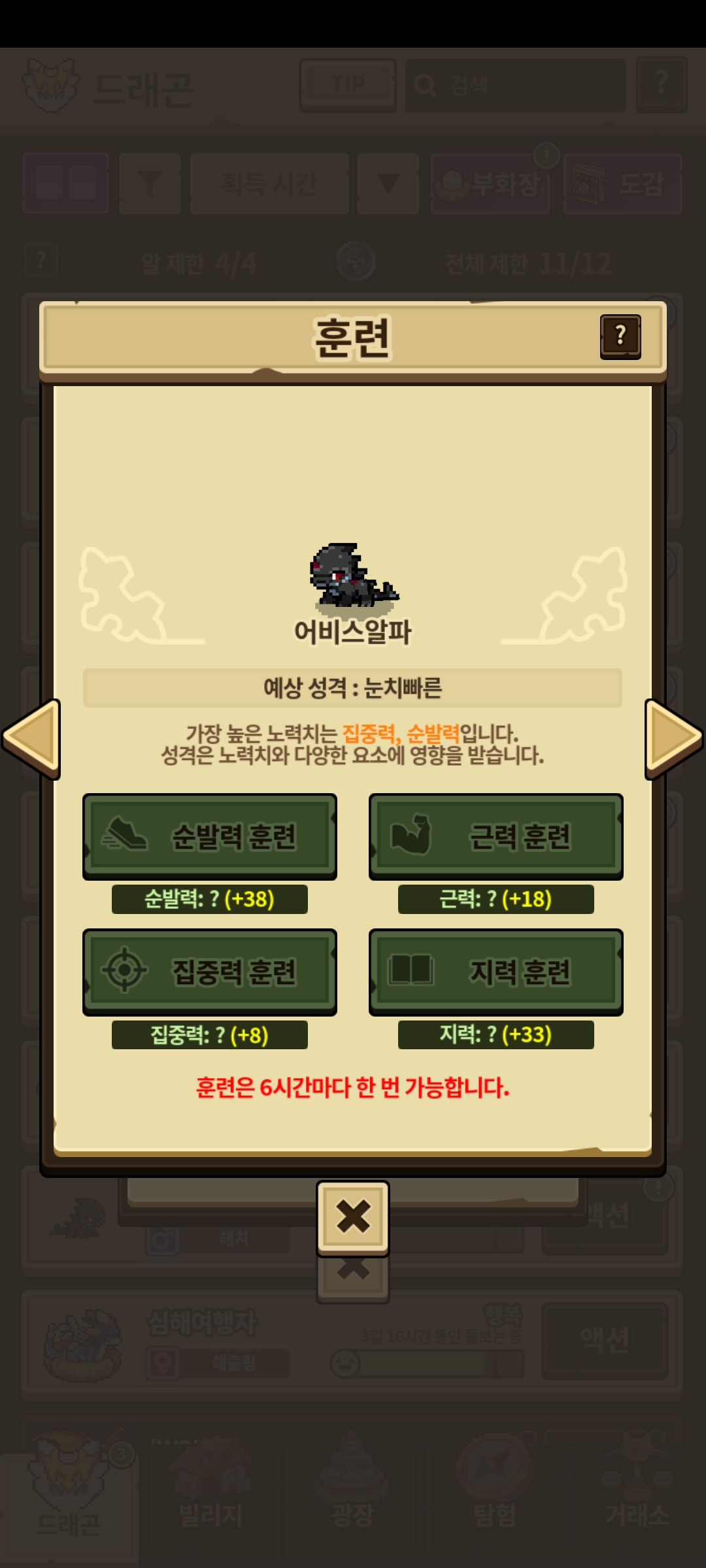 훈련 노력치를 보면 순발력 +33, 근력+18, 집중력+3, 지능+33으로 모든 노력치가 동일하다 뜹니다