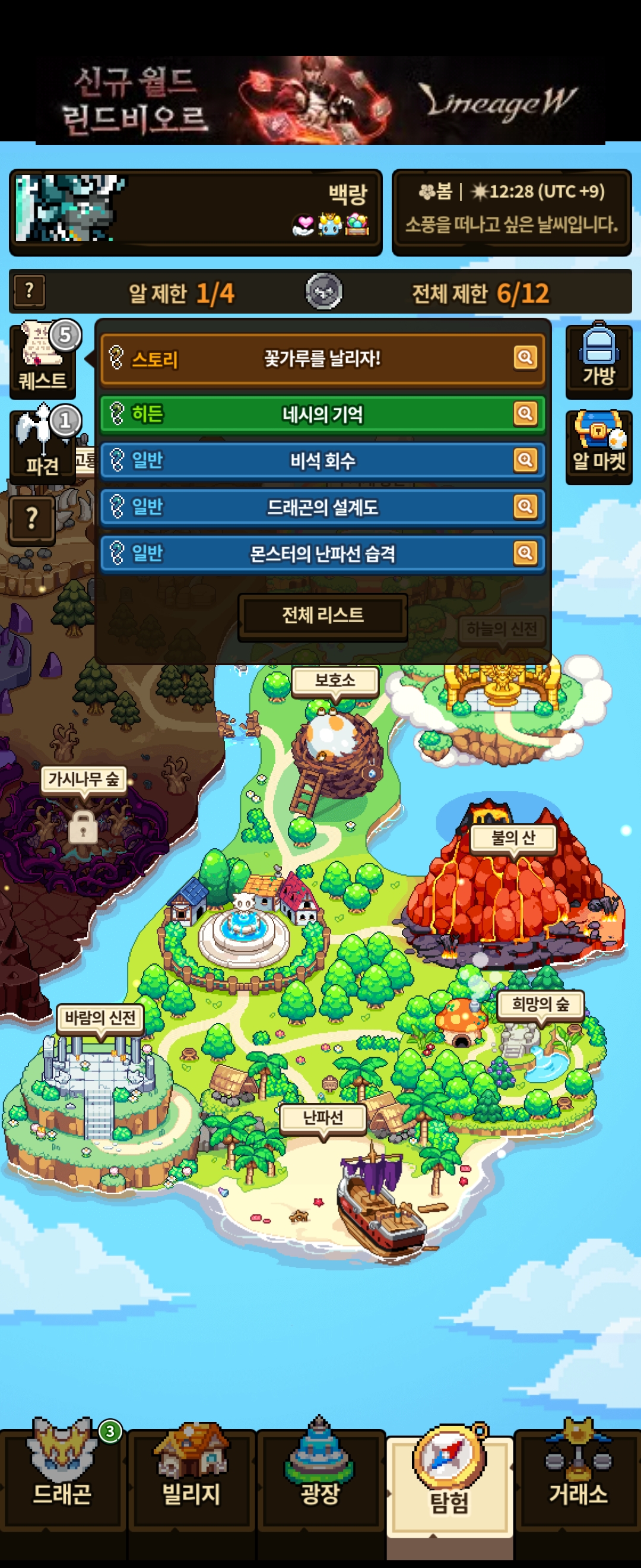 바람의 신전에서 진행하는 ‘꽃가루를 날리자!’ 퀘스트를 진행하던 중 서버 오류로 게임이 재시작된 후 퀘스트 전구가 뜨지 않아 진행이 불가능합니다.