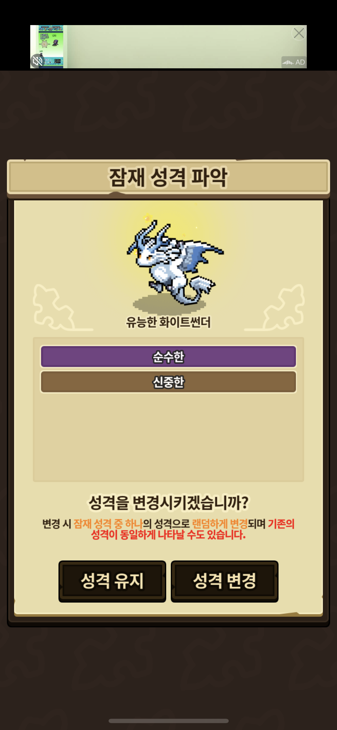 루네라로 성격을 돌리던 중 ‘신중한’ 화이트 썬더가 '유능한' 화이트 썬더로 표시되는 오류가 있었습니다! 확인 부탁드려요.
