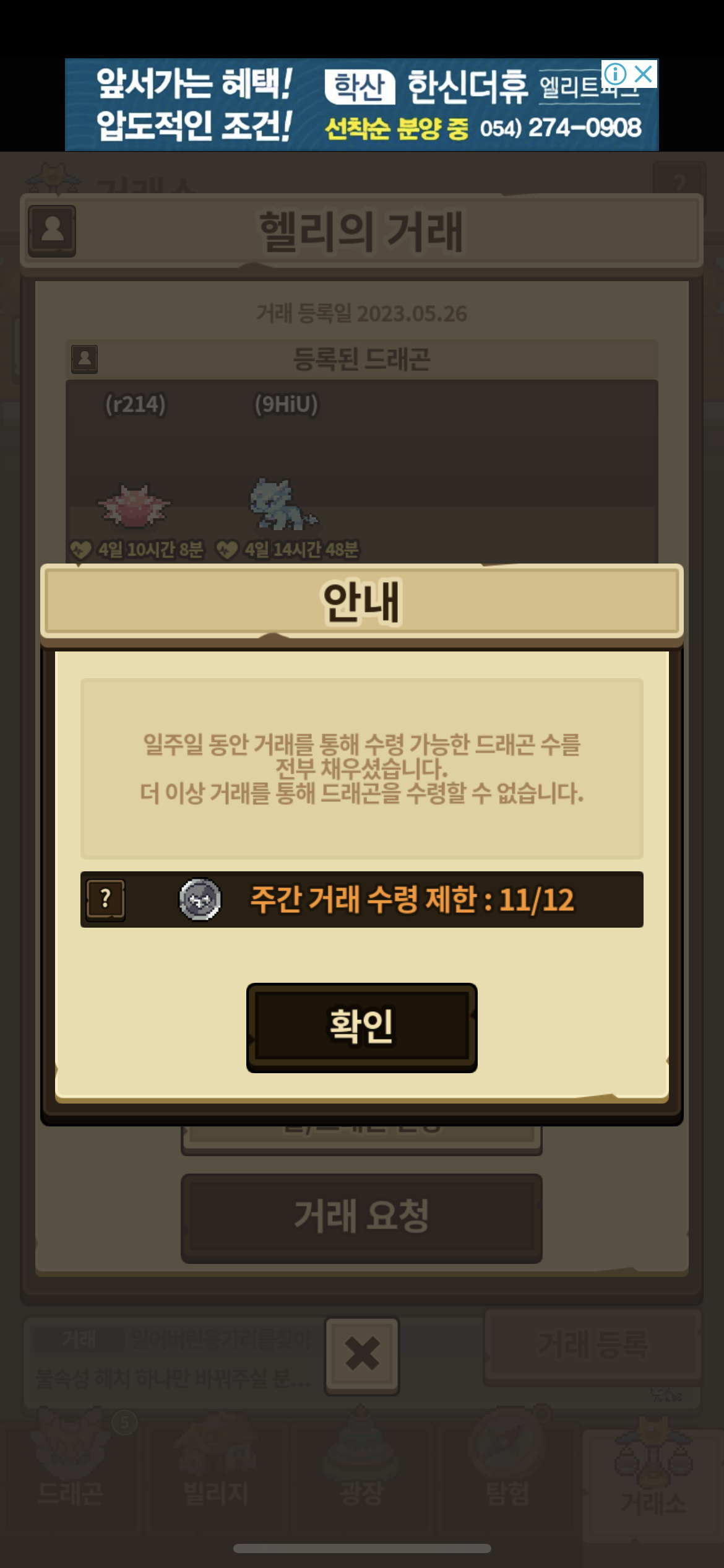 거래 신청시 아래 사진과 같은 문구가 뜹니다.