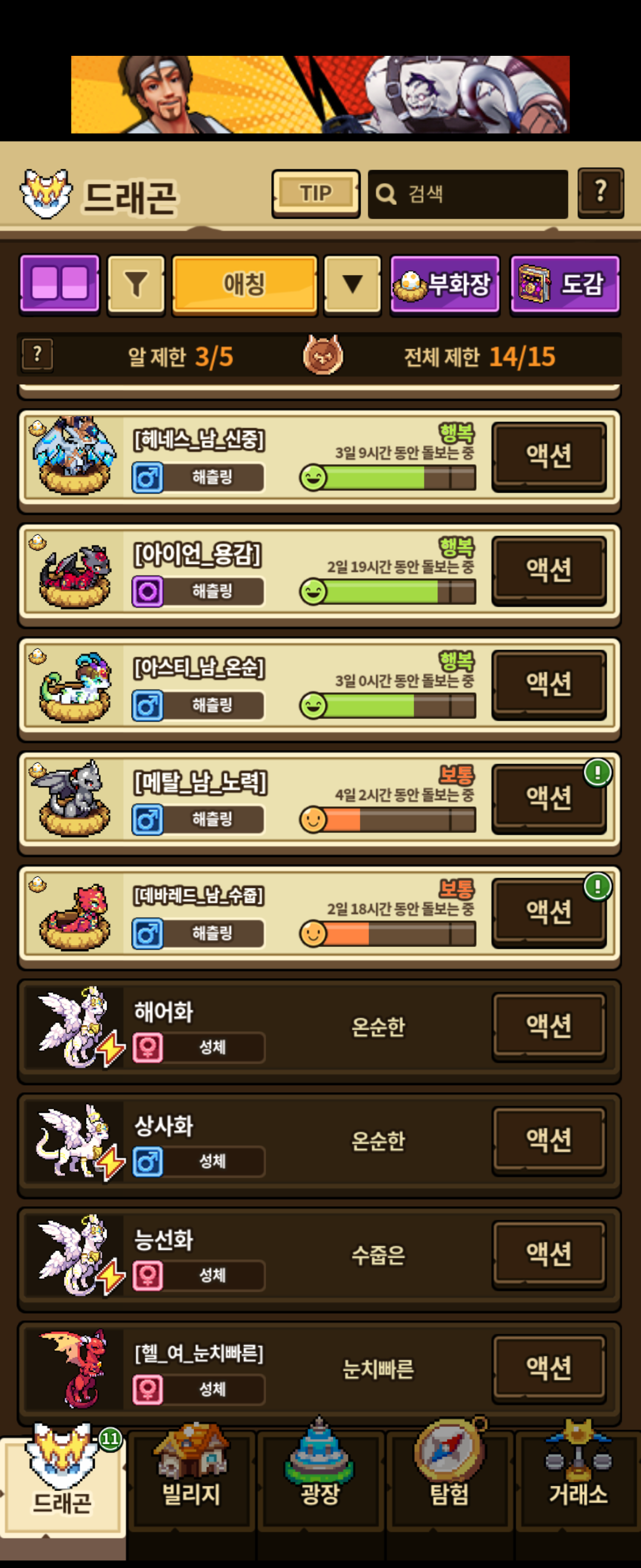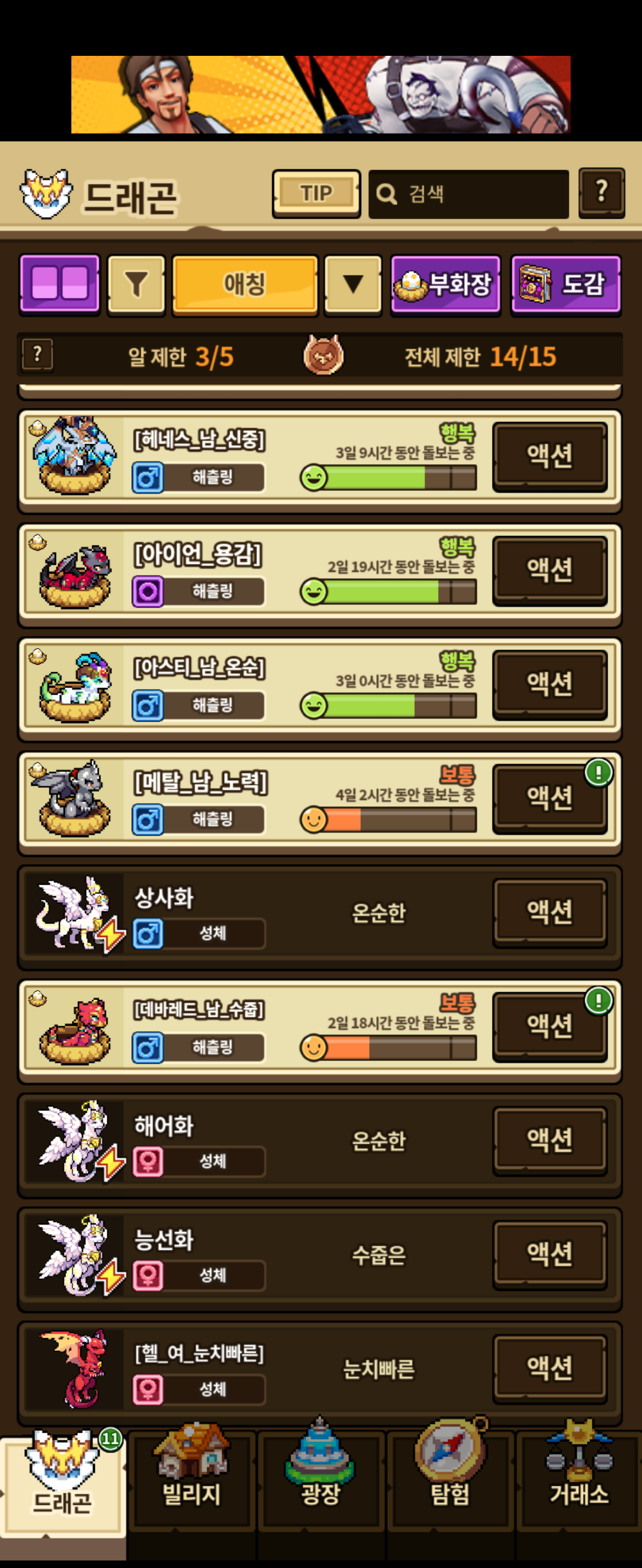 그런데 품종이나 애칭순으로 정렬 시 가끔 비슷한 순서에 정렬되는 드래곤들이 엉뚱한 것이 끼어있는 모습이 자주 보입니다.