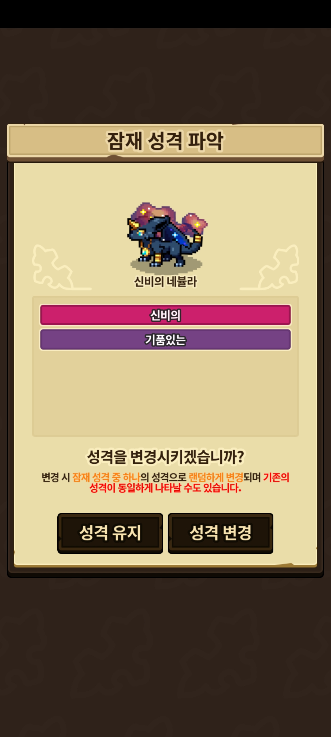 기품있는 성격이 발현됐는데도 신비의가 떴습니다.