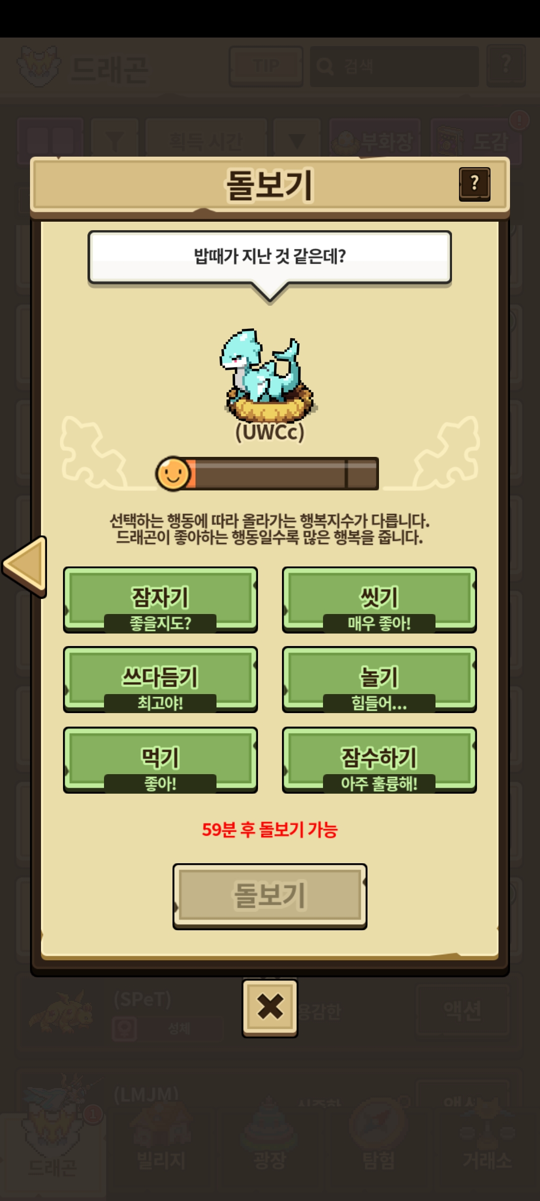 결론 : 돌보기를 많이 하거나(20~30회) 동일한 돌보기를 N회 이상하면 되는듯 하다 (예상은 10회이상)
