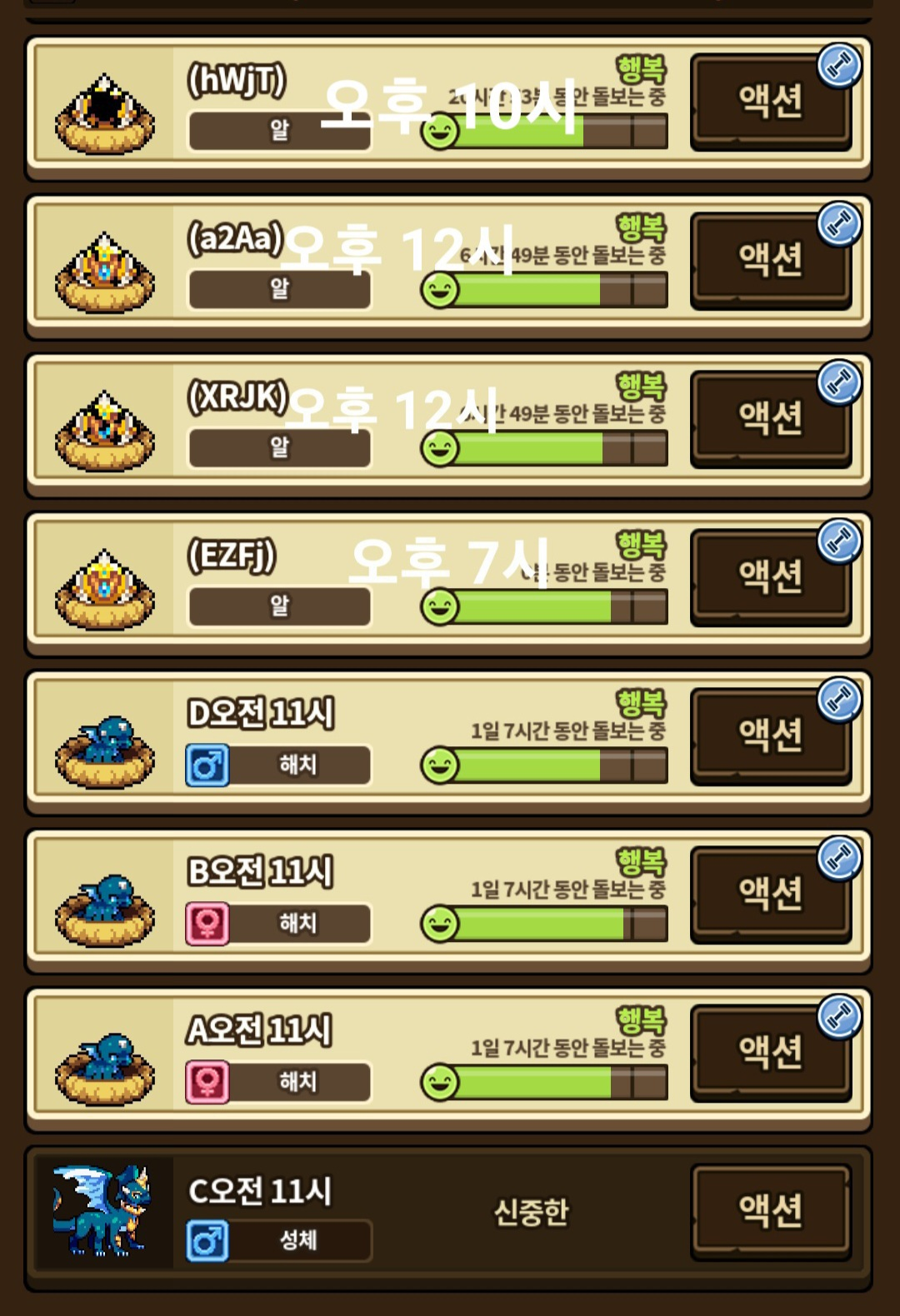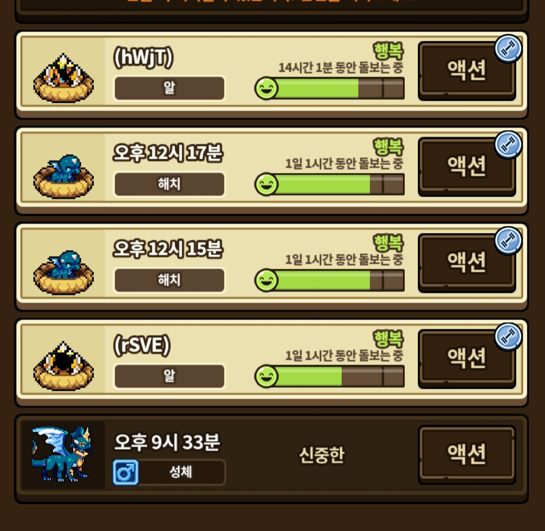 그리고 드래곤들의 애칭을 모두 획득 시간대로 바꿨습니다