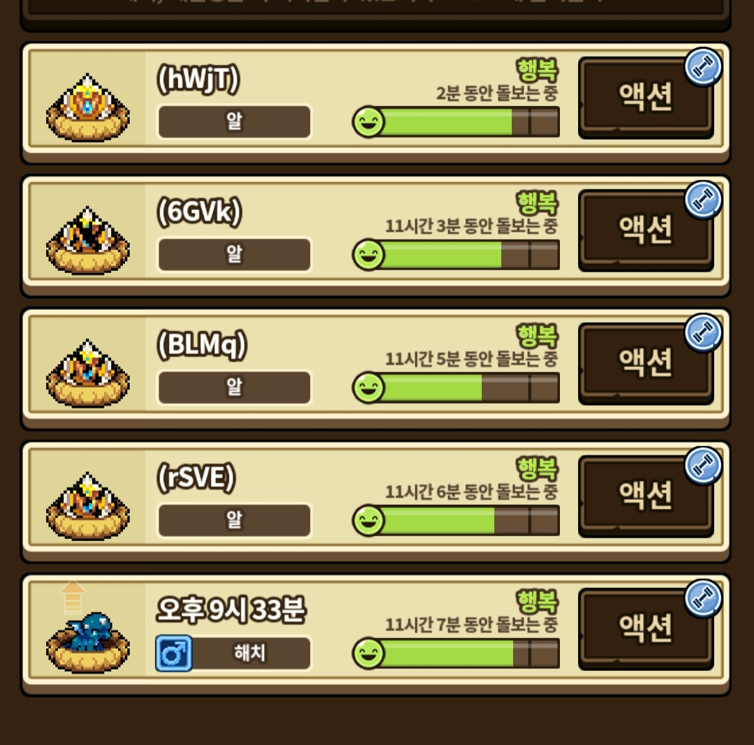 그리고 행복도 차이로 인해 성장이 늦은 식스레그혼이 오후 6시쯤 부화했는데, 이번에도 파란색이었습니다.