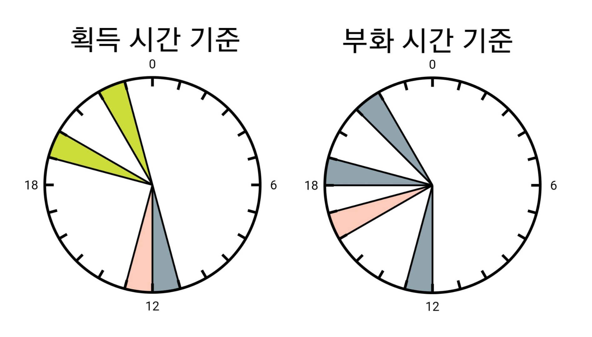 ↑두 그래프 모두 1시간 간격으로 색이 바뀐다고 가정했을 때 규칙이 보입니다