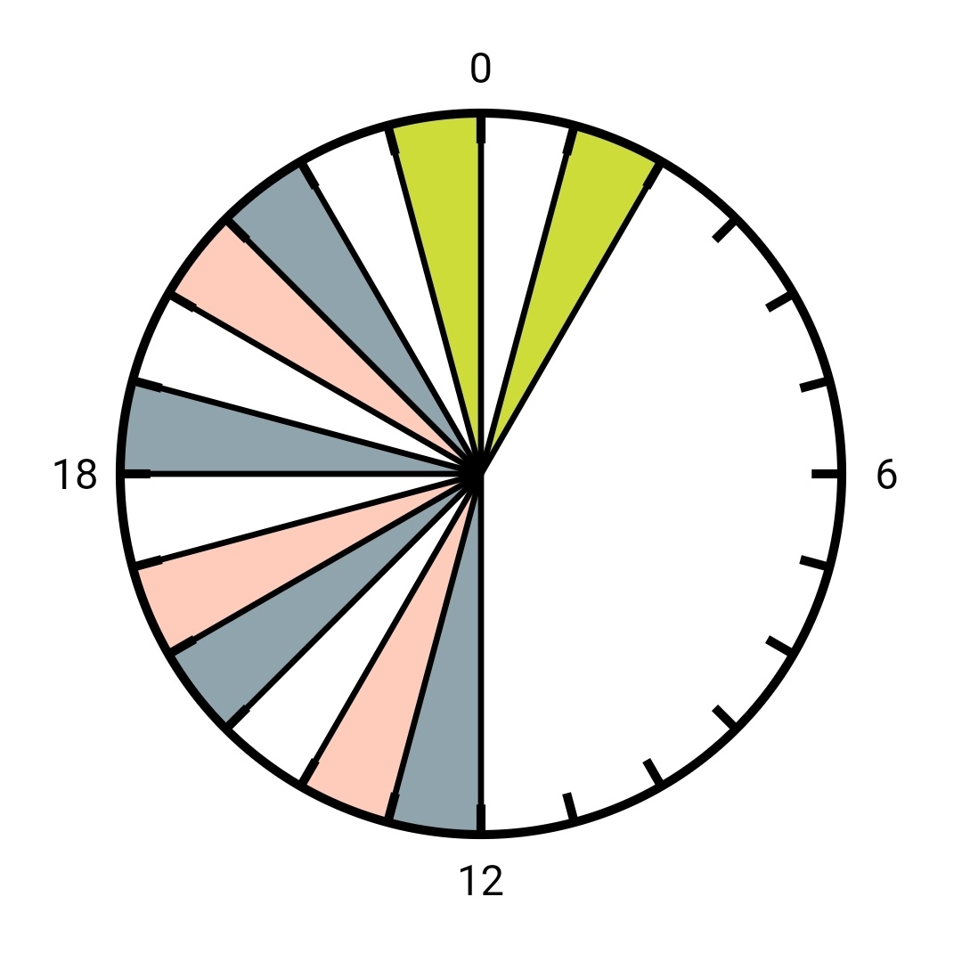 - - 분홍색: 태양빛 식스레그혼, 햇빛이 있는 시간대에 달리는 것을 좋아한다