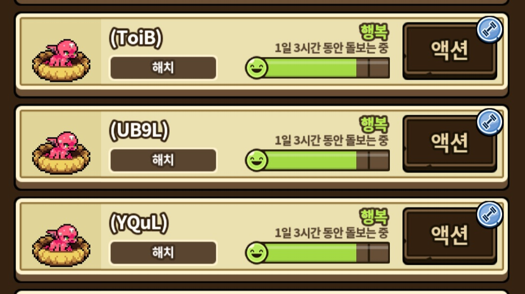 → 1시 40분쯤 노란색 식스레그혼 부화