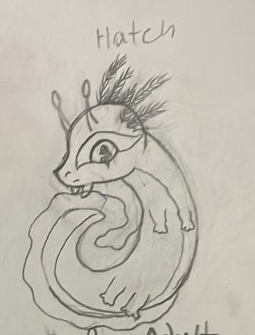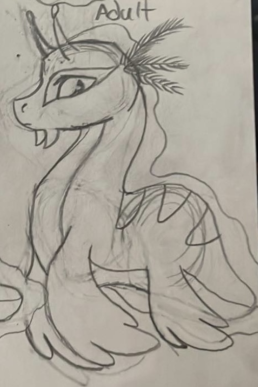 the webbing on this dragon has gotten longer extending to the dragons head, fins are huge with reminders of this dragons stubby legs , this dragon has a sleepy nature but gets lonely.