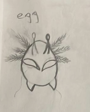 this egg sprouts gills to breathe in the water , the antenna are long and brightly colored on the tips , the egg has an eye like pattern on it with two spikes protruding from the bottom.