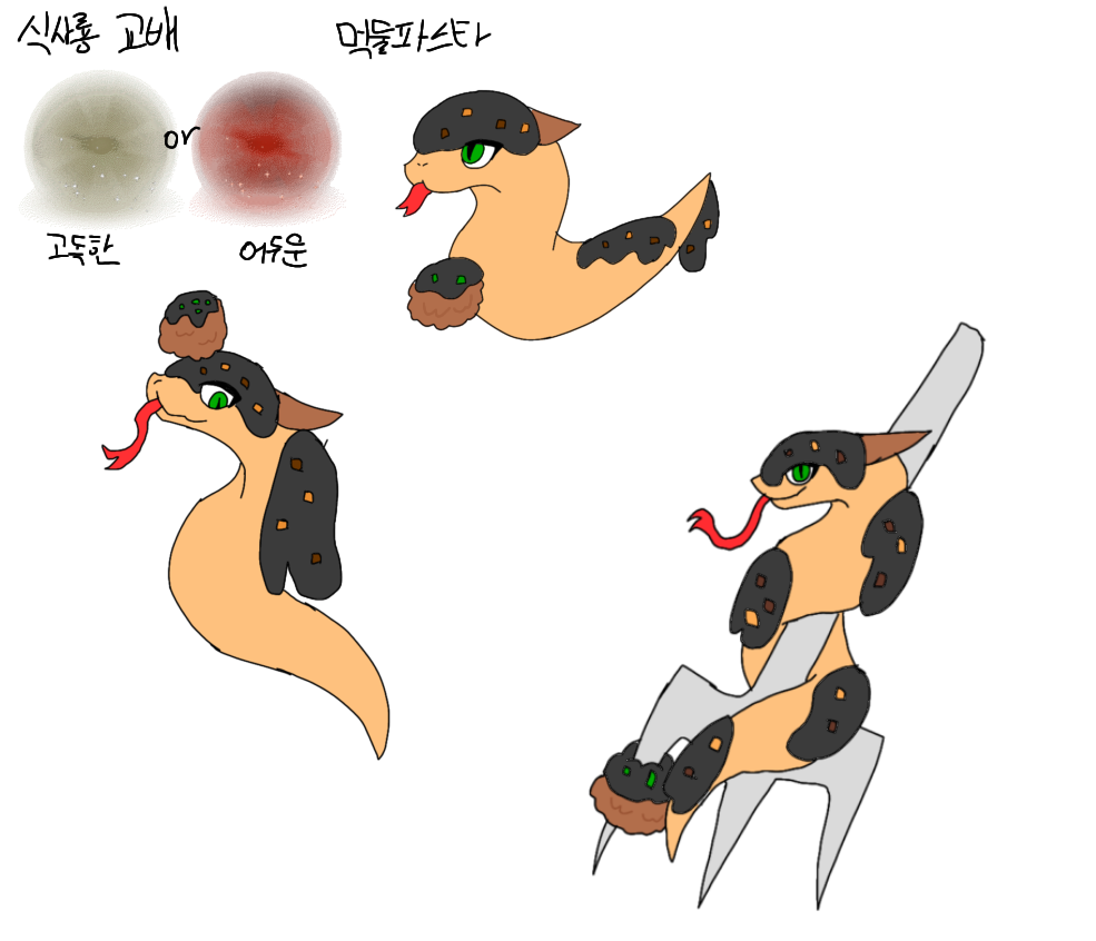 It is a dragon that resembles spaghetti. He is good at cooking, and Food Snake Dragon's food makes people happy. Food Snake Dragon feels proud of this.
