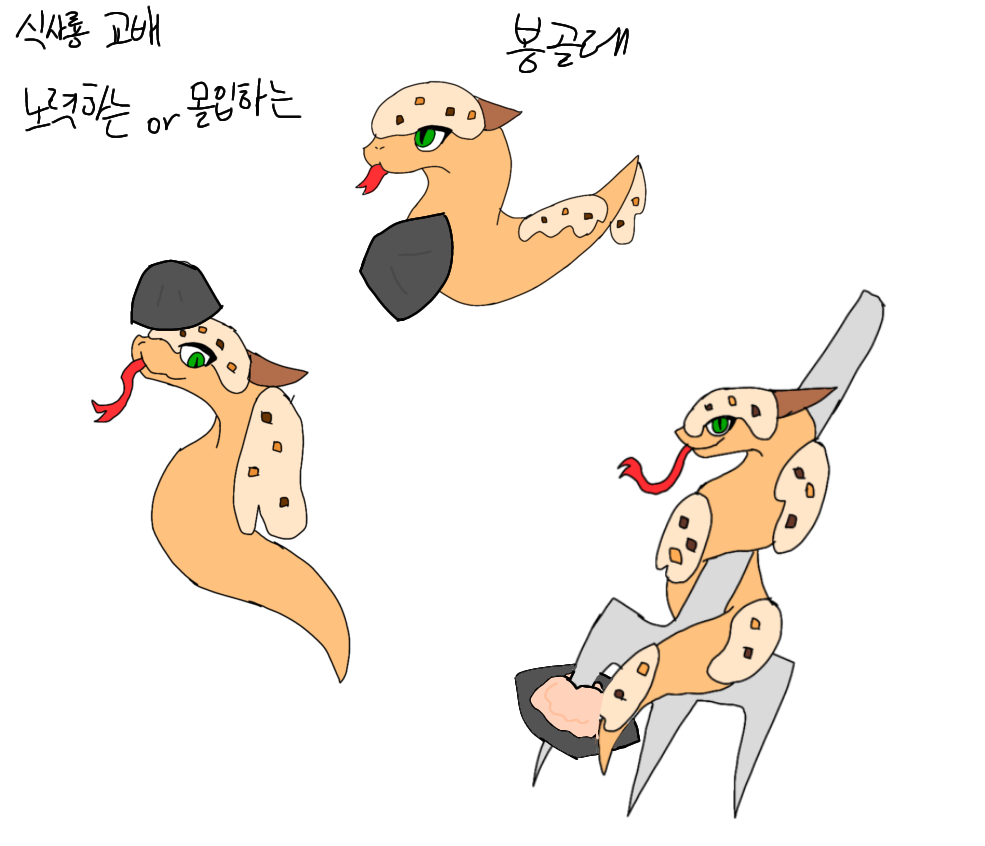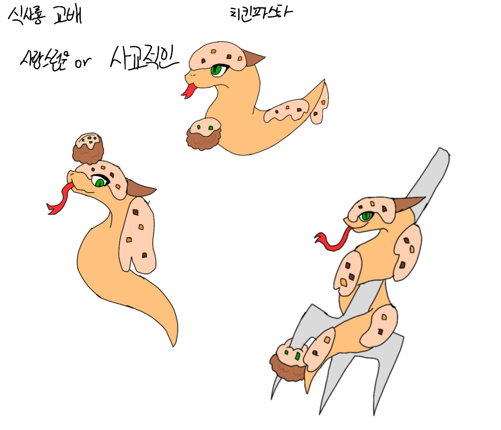 It is a dragon that resembles spaghetti. He is good at cooking, and Food Snake Dragon's food makes people happy. Food Snake Dragon feels proud of this.