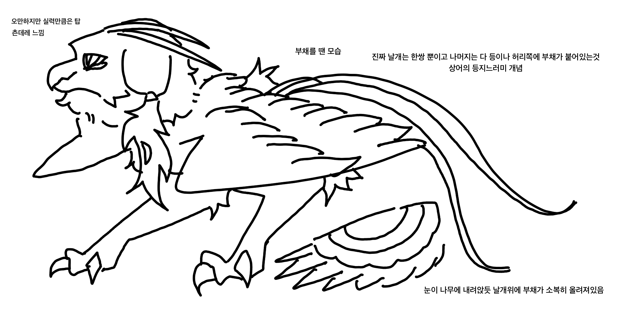 해츨링때는 앞발의 깃이 풍성해지며 새로운 부채로 자라나요.