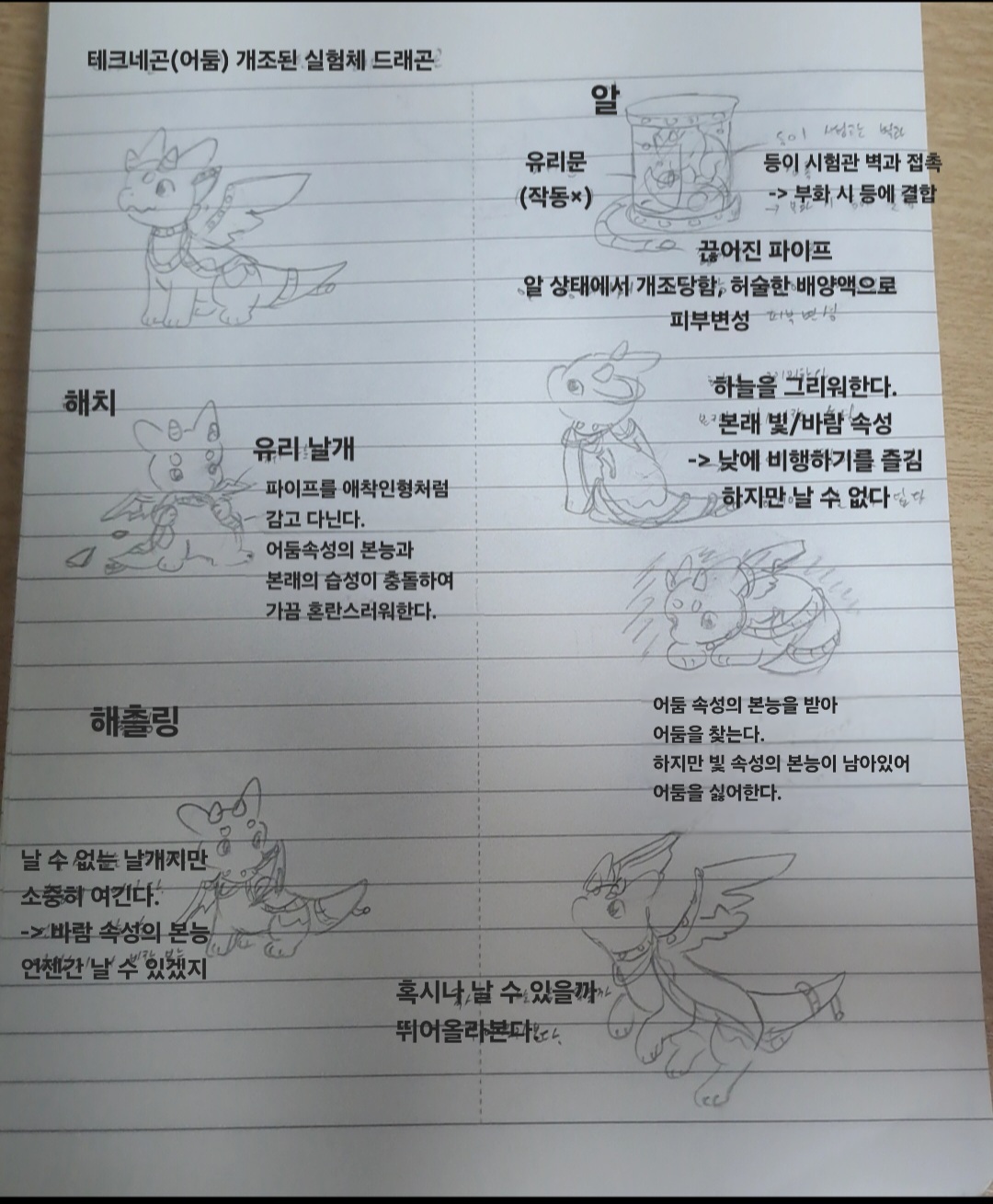 자신의 의지와 관계 없이 알상태에서 끌려가 속성까지 개조되어버린 설정은 놓치고싶지 않아서 수정하는데 고생을 좀 했네요