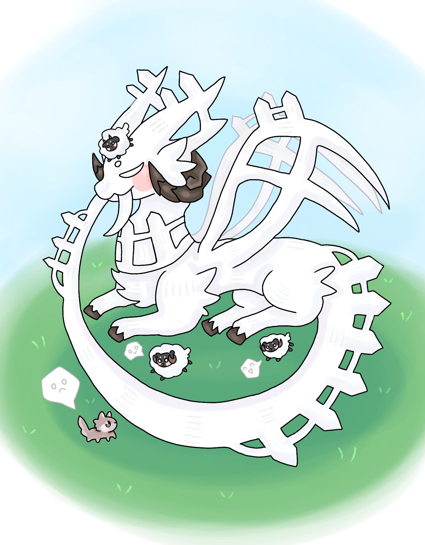포식자로부터 쫒기는 다른 생명들을 자신의 영역으로 들여와 보호해주는 하얀색의 거대한 울타리드래곤이다.