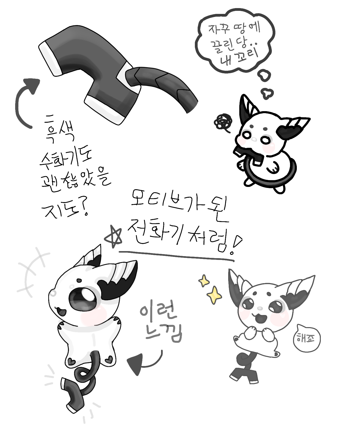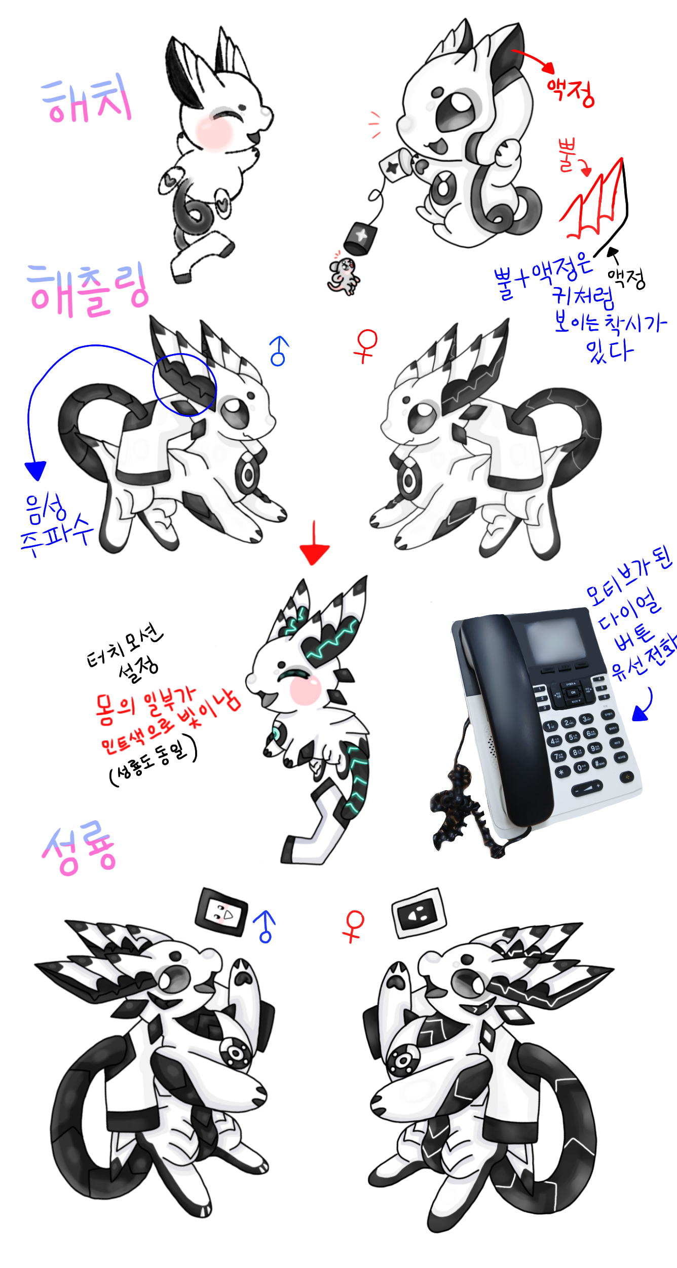 모티브가 되었던 제가 쓰는 다이얼 전화기처럼 한마리는 꼬리의 수화기 윗면이 ‘검정색’ 이였어도 괜찮았을 것 같다는 생각이 드네요.. ㅎㅎ