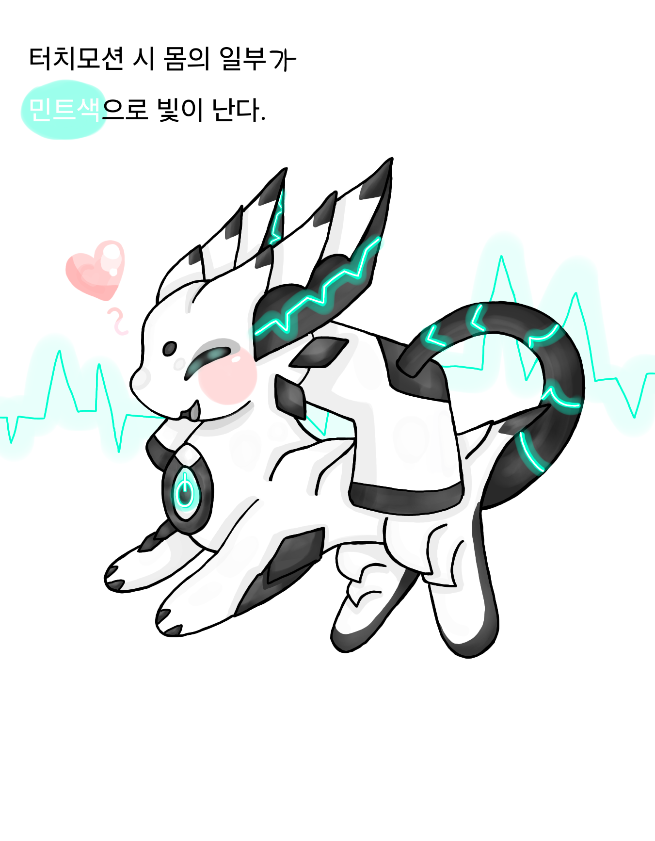 - > 기본적으로는 심플하게 흑&백으로 이루어진 디자인이지만, 터치모션을 통하여 포인트 컬러를 ‘민트색’ 을 표현하여 반전을 주면 좋을 것 같다는 생각을 했습니다.