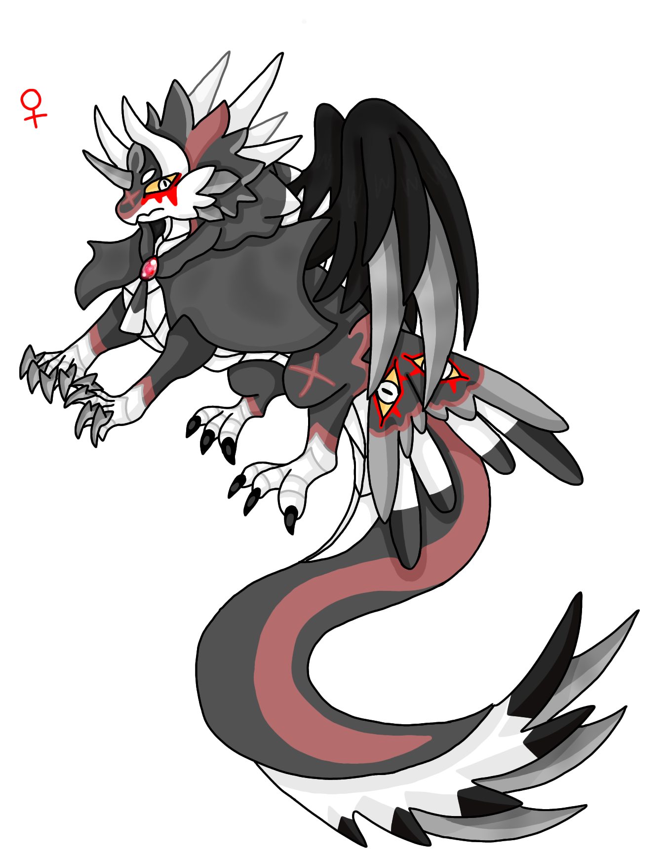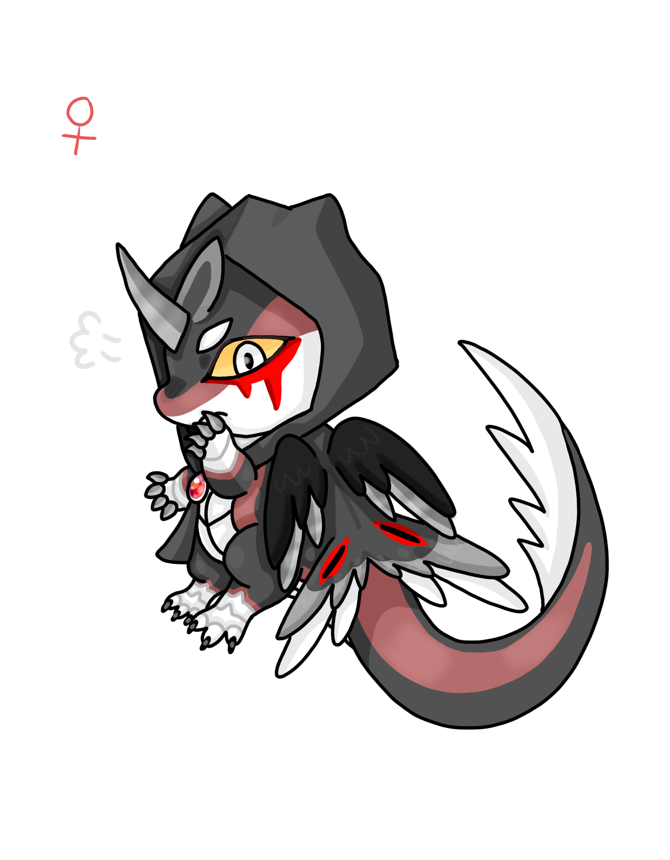 ! 암컷개체는 붉은색 보석이 후드에 장식으로 달려있고, 신체엔 보석이 존재하지 않는다.
