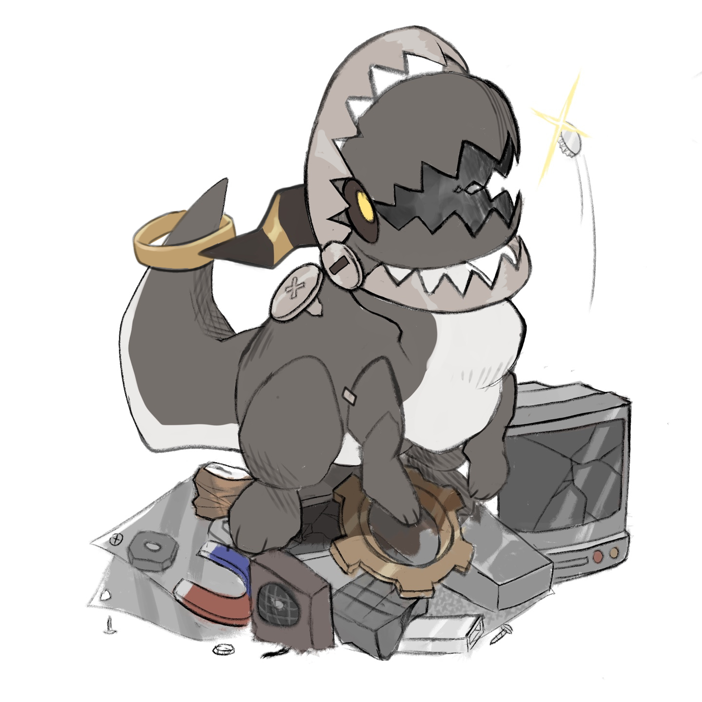 끊임없이 튼튼해지고 싶어하여 쇠를 먹는 소망이 커진 탓에 꼬리가 벌어지며 또 다른 입이 하나 더 생겨났다. 꼬리의 입은 쇠를 물어뜯기보다 자석처럼 빨아들이는데에 특화되어있다.