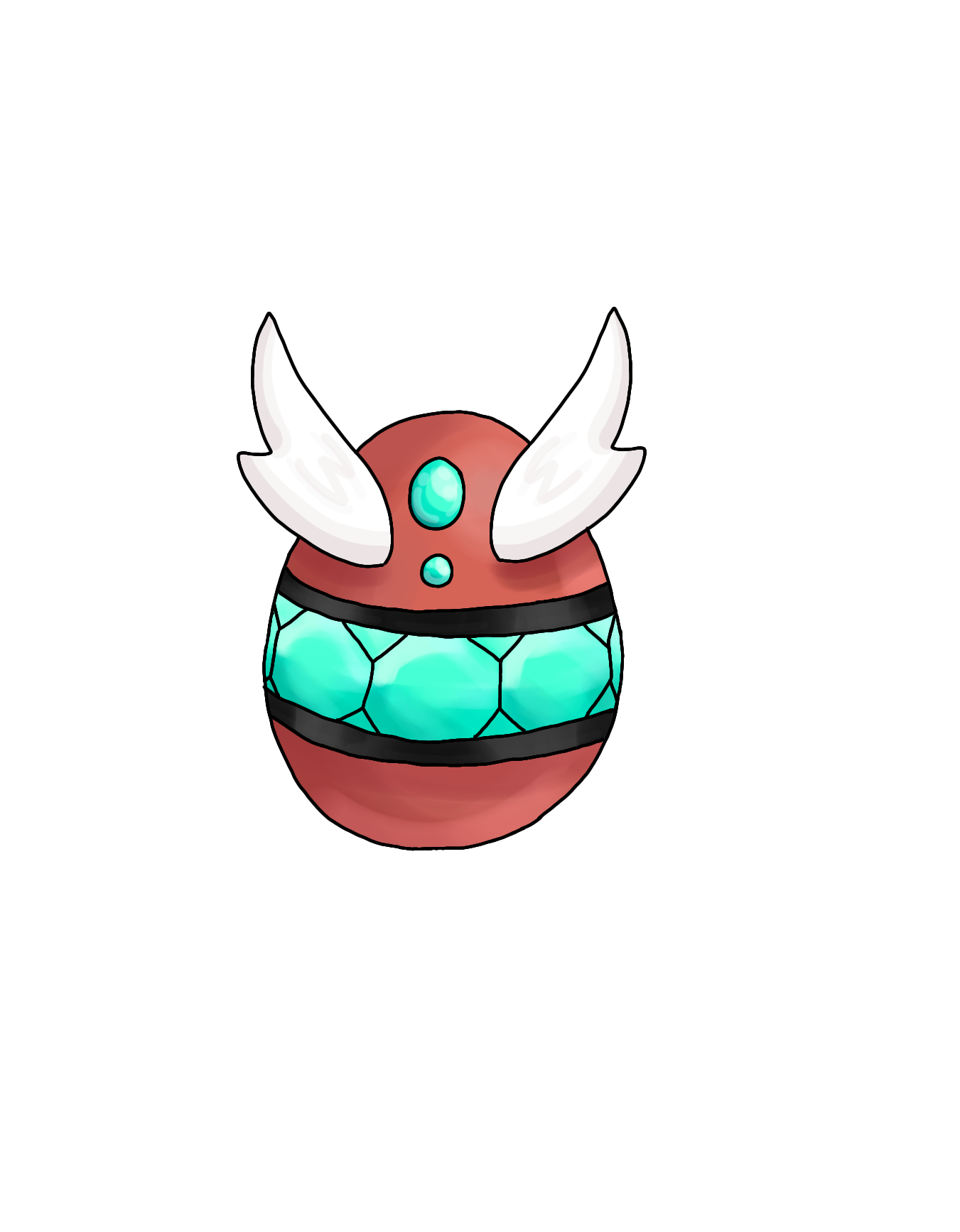 겉은 붉은색 알과는 대비되는 녹빛의 단단한 옥장비가 둘러져있어서 외부의 충격으로부터 보호받을 수 있다.
