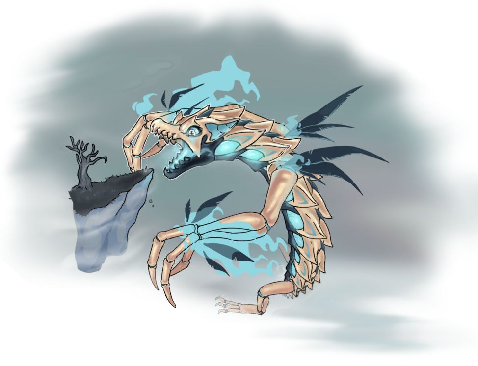 그리고 절벽을 향해 날아온 그 무언가는 매우 크고 한없이 길며, 온몸이 뼈 밖에 없고, 알 수 없는 차가운 기운이 느껴졌다. 이 기운을 느끼고선 ‘아, 여기는 한 번 오면 다시 돌아가지 못하겠구나’ 싶어 몸이 저절로 털썩 주저앉았다.