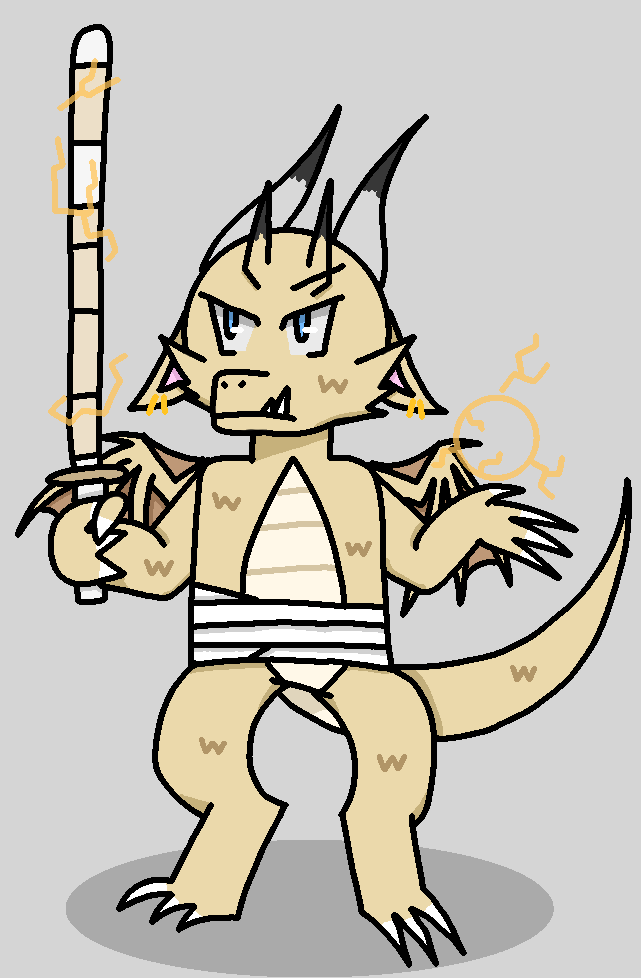 성체:하늘의 벼락과 수많은 무기를 다루는 무사 드래곤이다.
