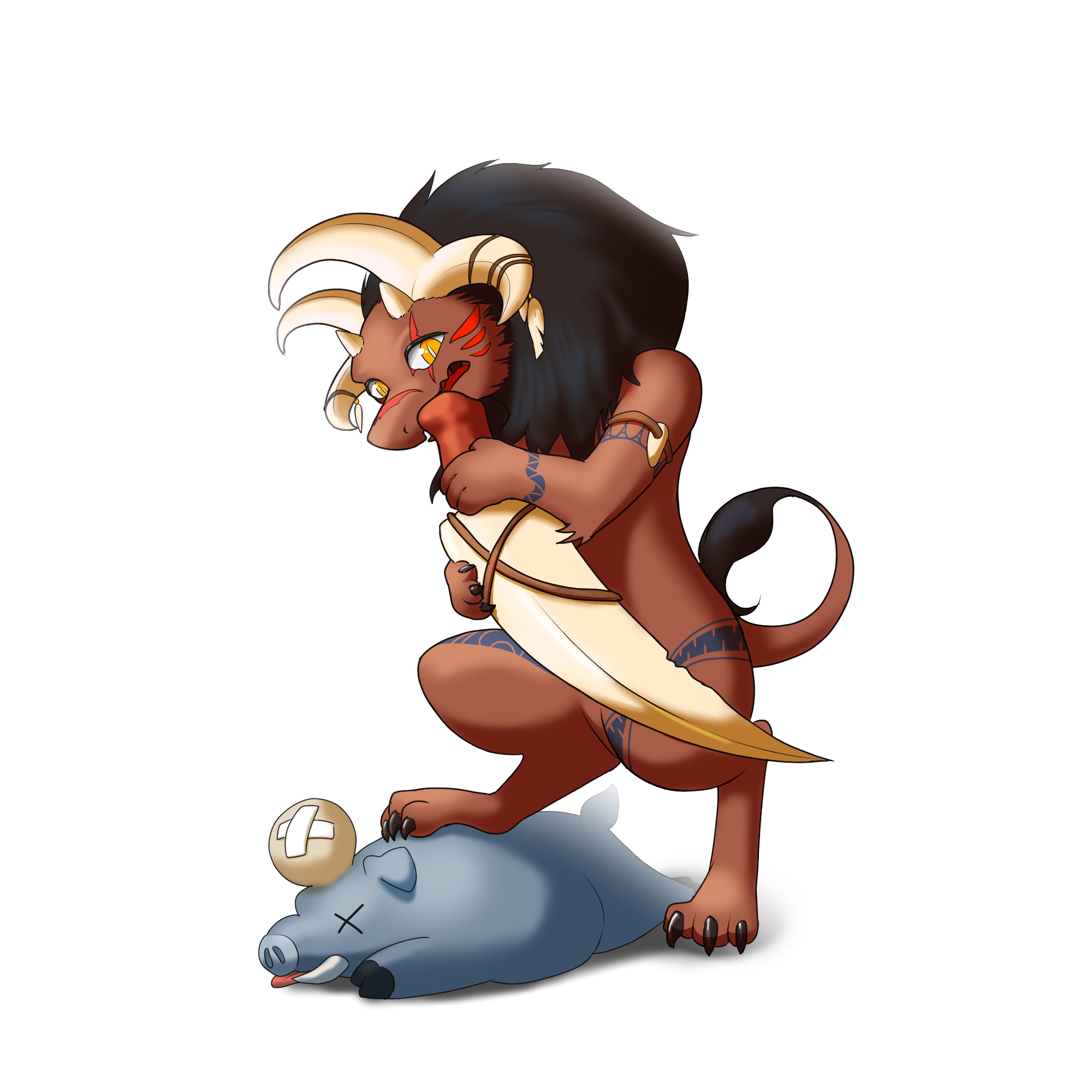 적군은 그의 포효에 코웃음치지만, 그의 포효에 땅에 갑작스레 진동이 울리며 순식간에 적군 족장의 머리가 떨어진다.