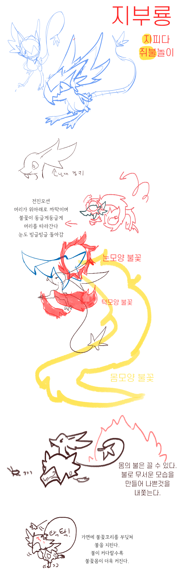 몸에 생겨난 타오르는 무늬는 지부룡이 불을 얼마나 잘 다루는지 보여준다.