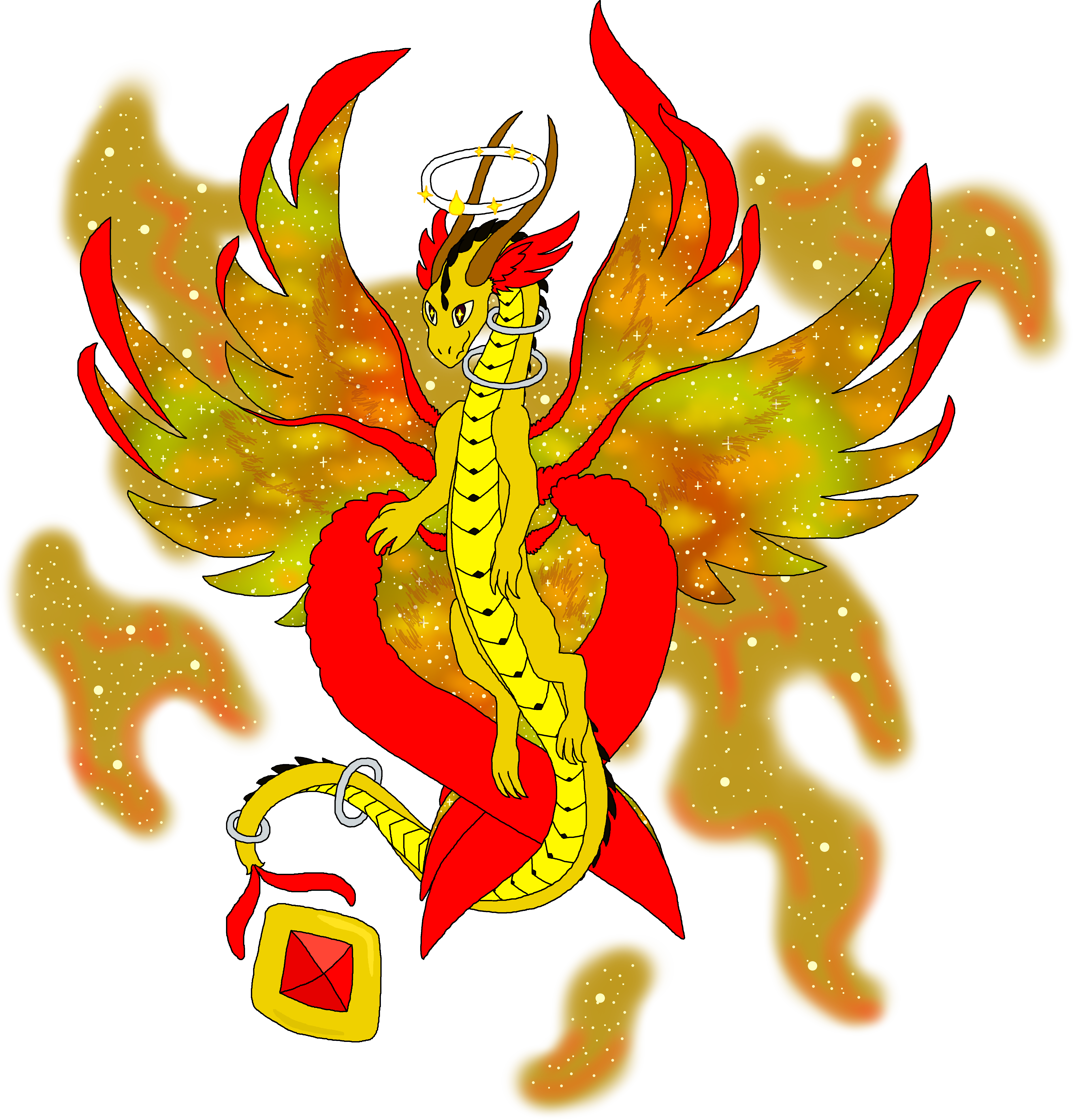 It is at home among the stars, and spends most of its time travelling the universe. But sometimes it will come down to visit other dragons and people, to bring the divine glory of the universe to their world.