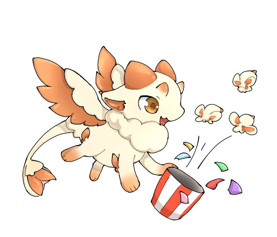안녕하세요! 이번에는 이름 그대로 팝콘이 모티브의 드래곤을 만들어 보았습니다! 드래곤으로 하면 재미있을 것 같은 것은 없을까 찾고 있었을 때에, 우연히 팝곤의 이름을 생각해 보고 이번에 이 아이로 참가해 보았습니다. 팝콘이라고 하면 영화관이라고 생각합니다만, 드래곤 빌리지의 세계관에 영화가 있을지 몰랐기 때문에, 거리 예술이나 매직의 요소를 넣어 보았습니다. (알기 어려울지도 모르지만, 어덜트의 그림으로 비둘기를 내는 매직같은 일을 하고 있습니다)