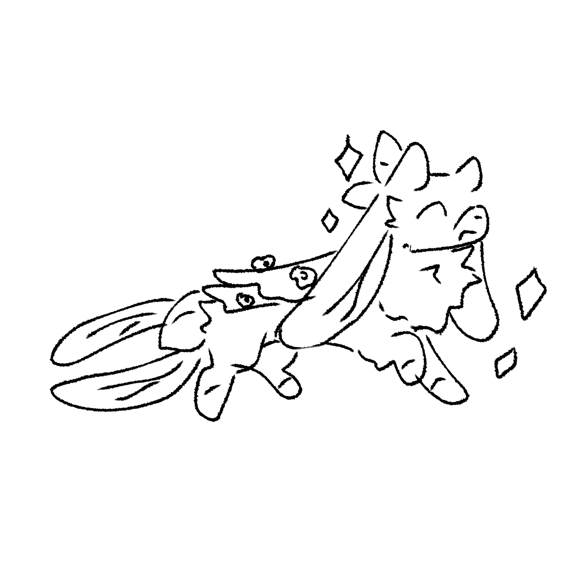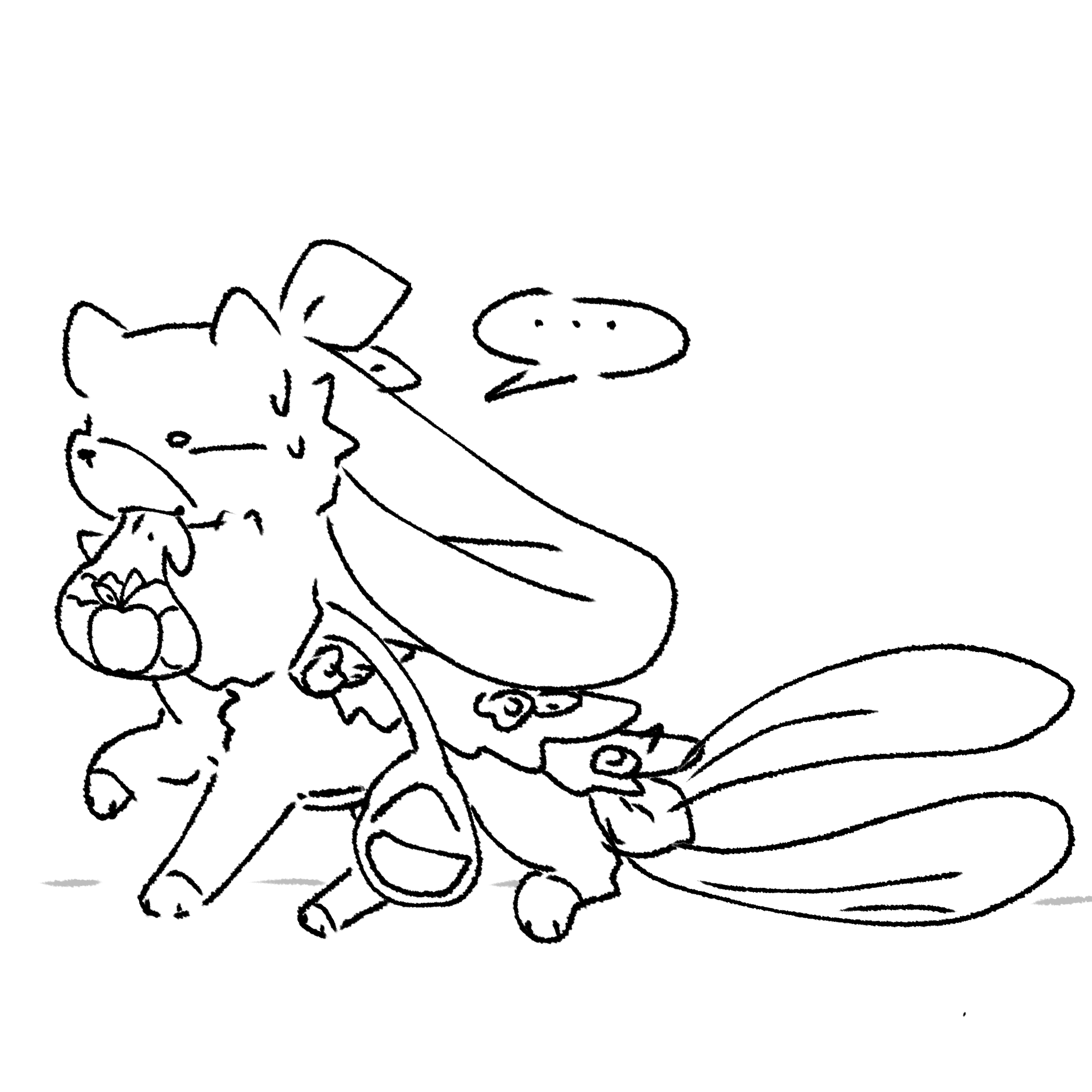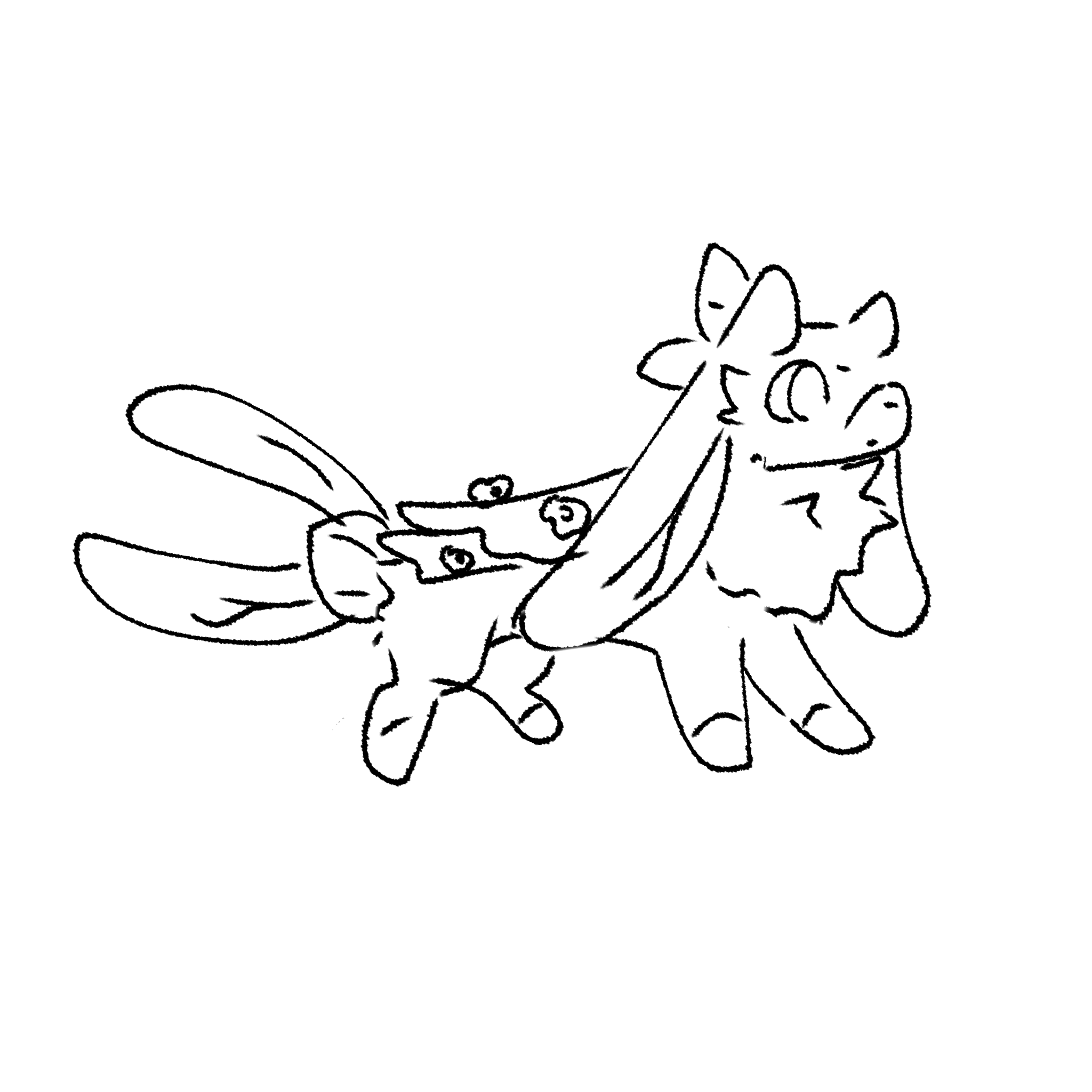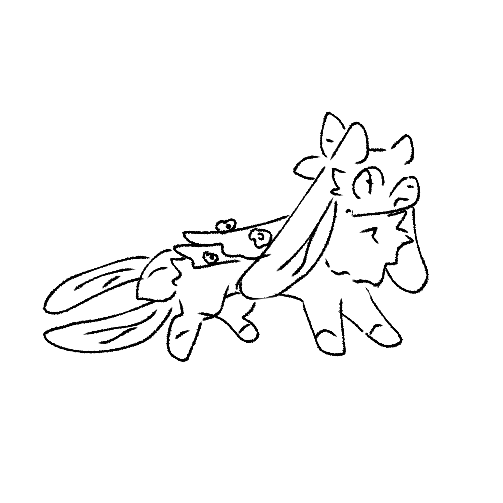 Kirumi hatches into a tiny creature with short, floppy ears that hang down at her sides. She is clumsy, often curling up in the grass or chasing butterflies. She also picks flowers by holding them in her mouth.
